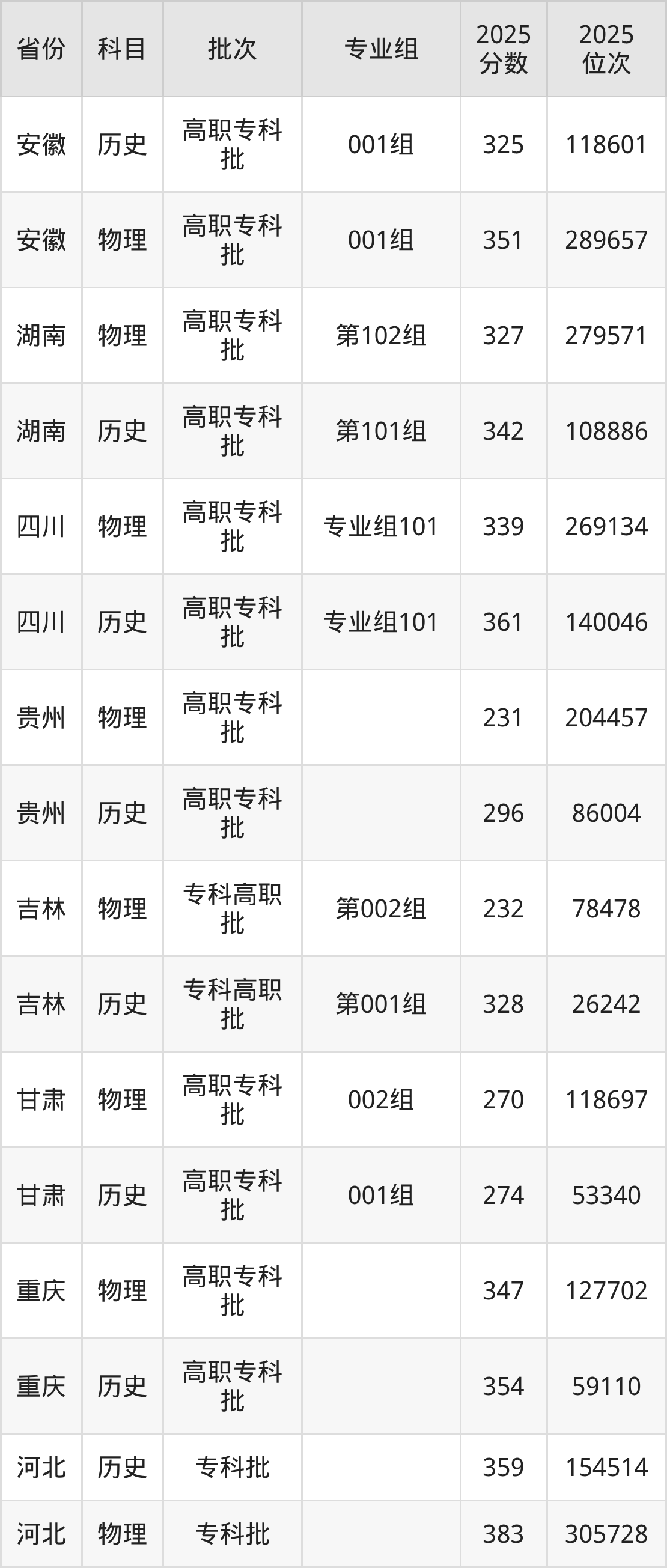 鹤壁职业技术学院001组:2025年投档录取最低分为325分,录取最低位次为118601名。