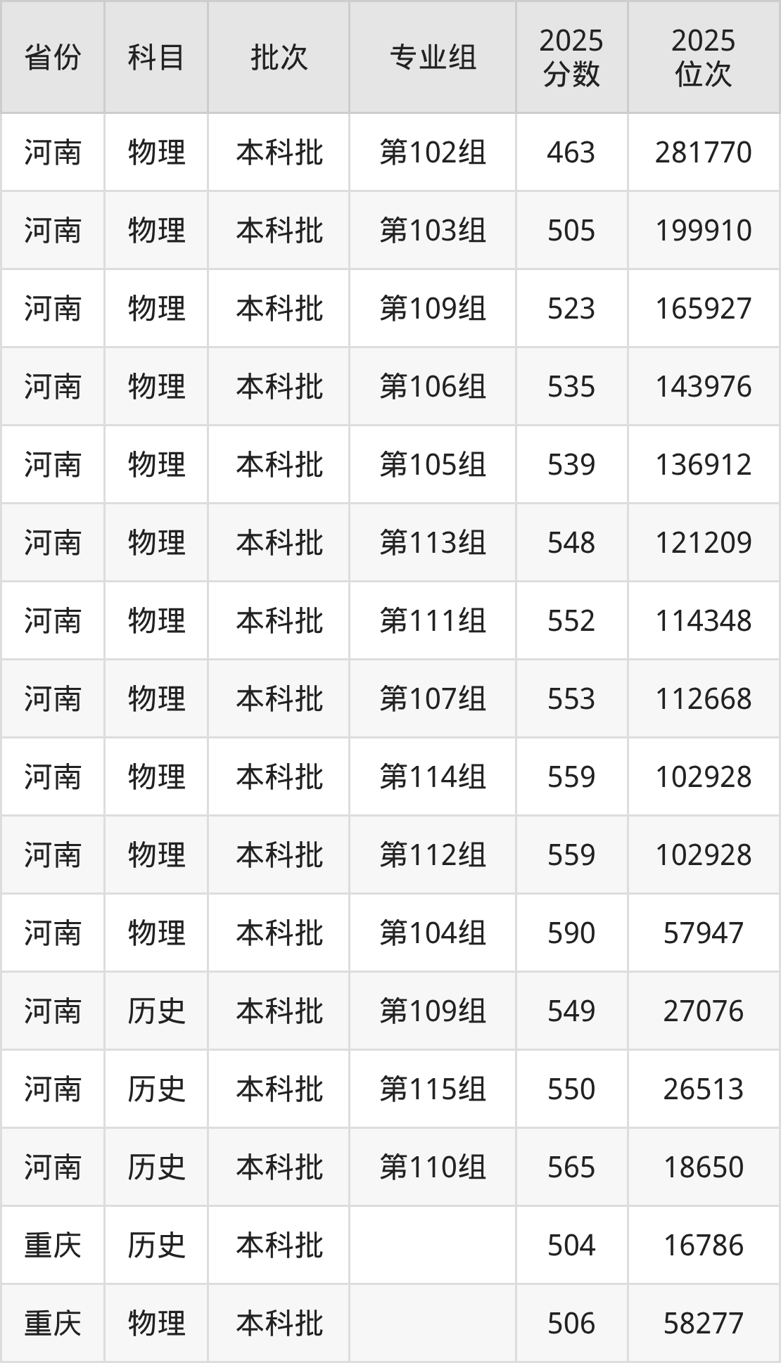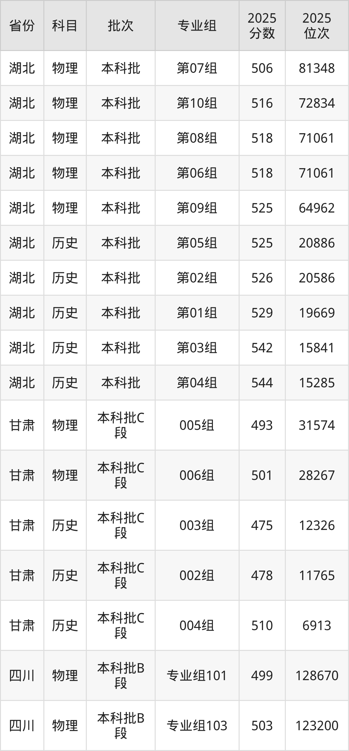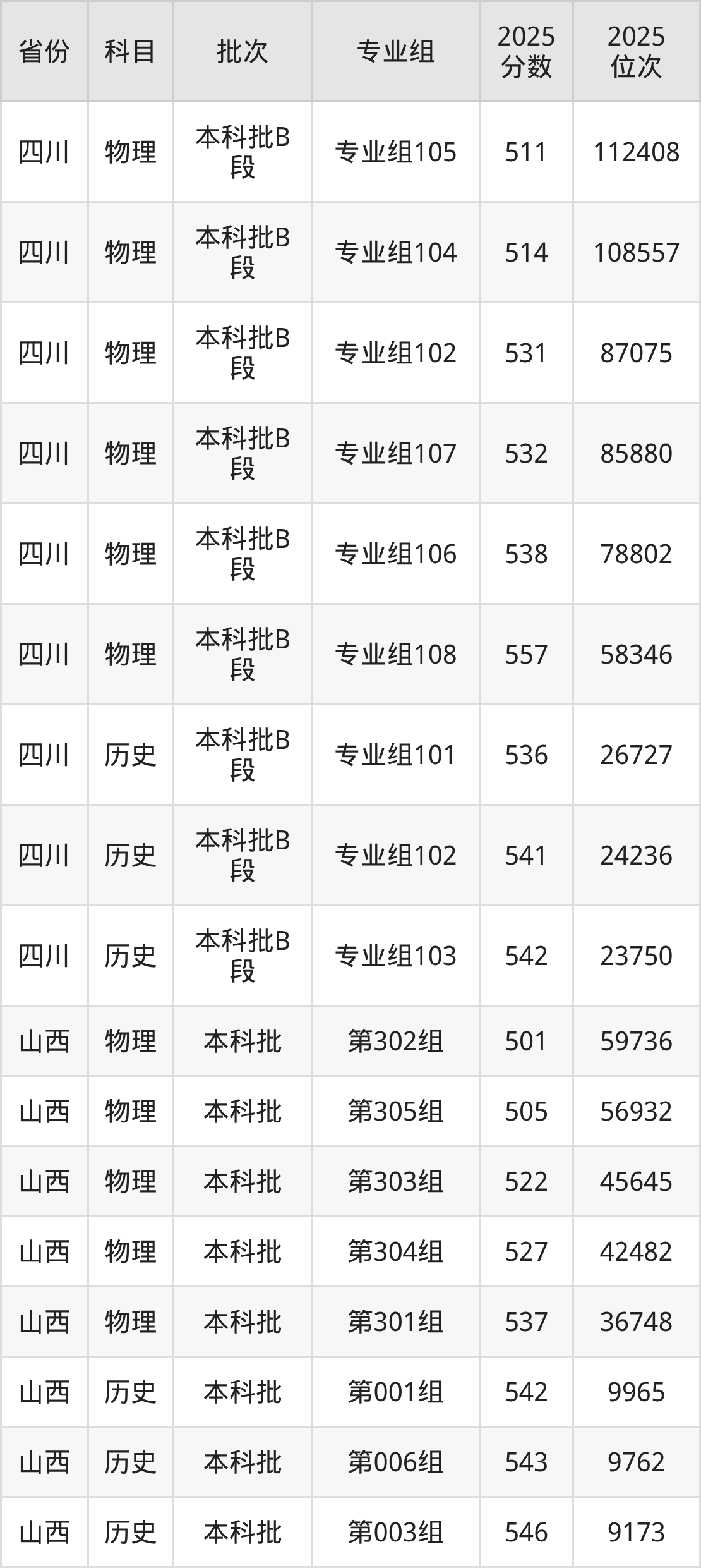 2025年投档录取最低分为506分,录取最低位次为58277名。