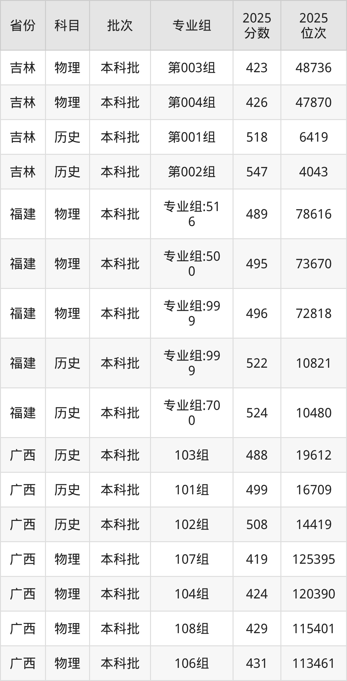 潍坊学院专业组103:2025年投档录取最低分为503分,录取最低位次为123200名。