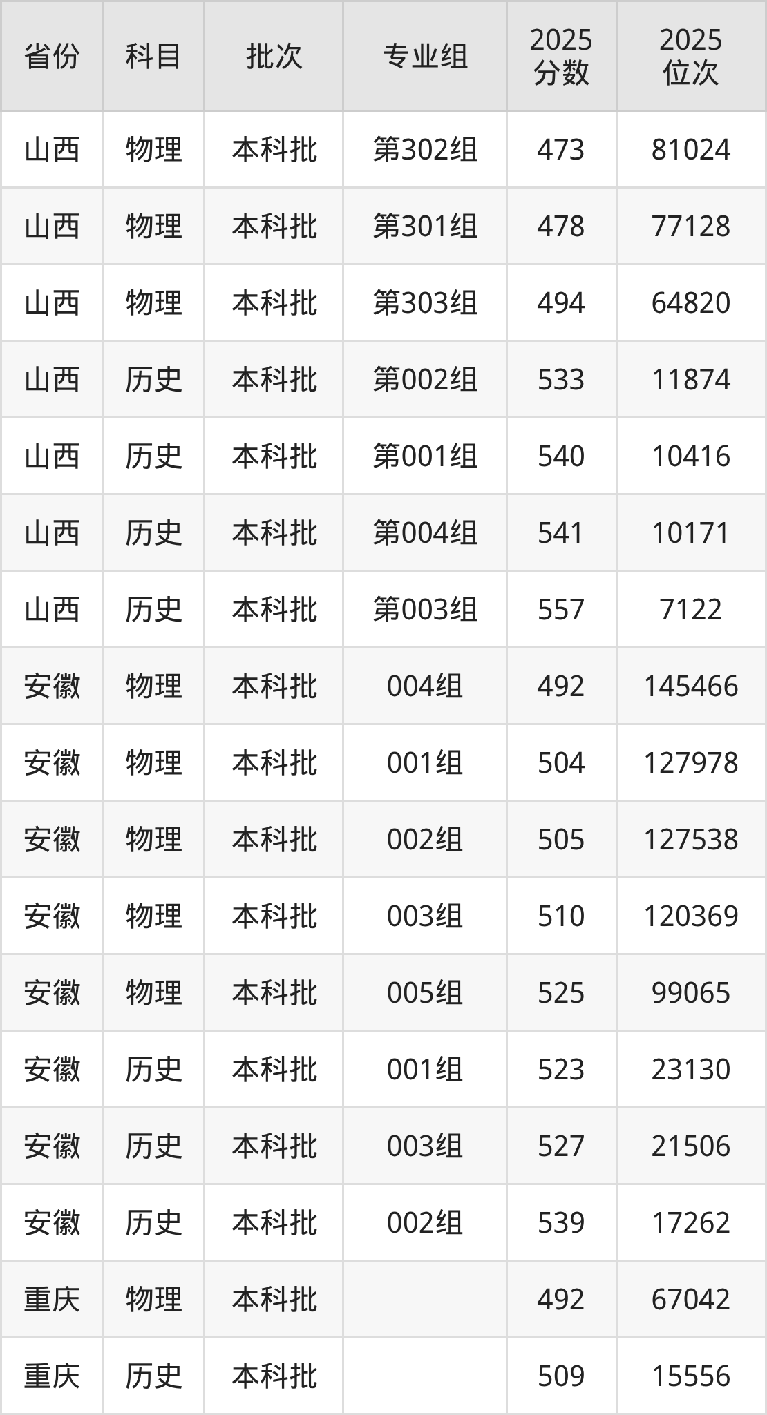 潍坊学院专业组104:2025年投档录取最低分为492分,录取最低位次为138221名。
