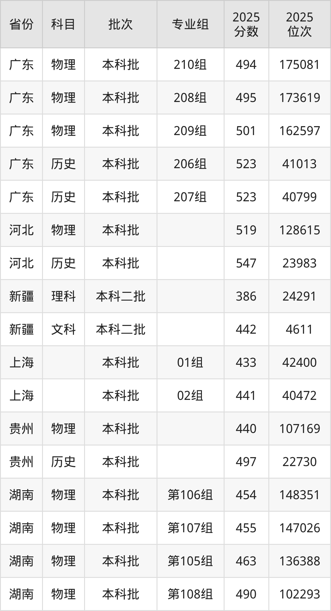2025年投档录取最低分为440分,录取最低位次为107169名。