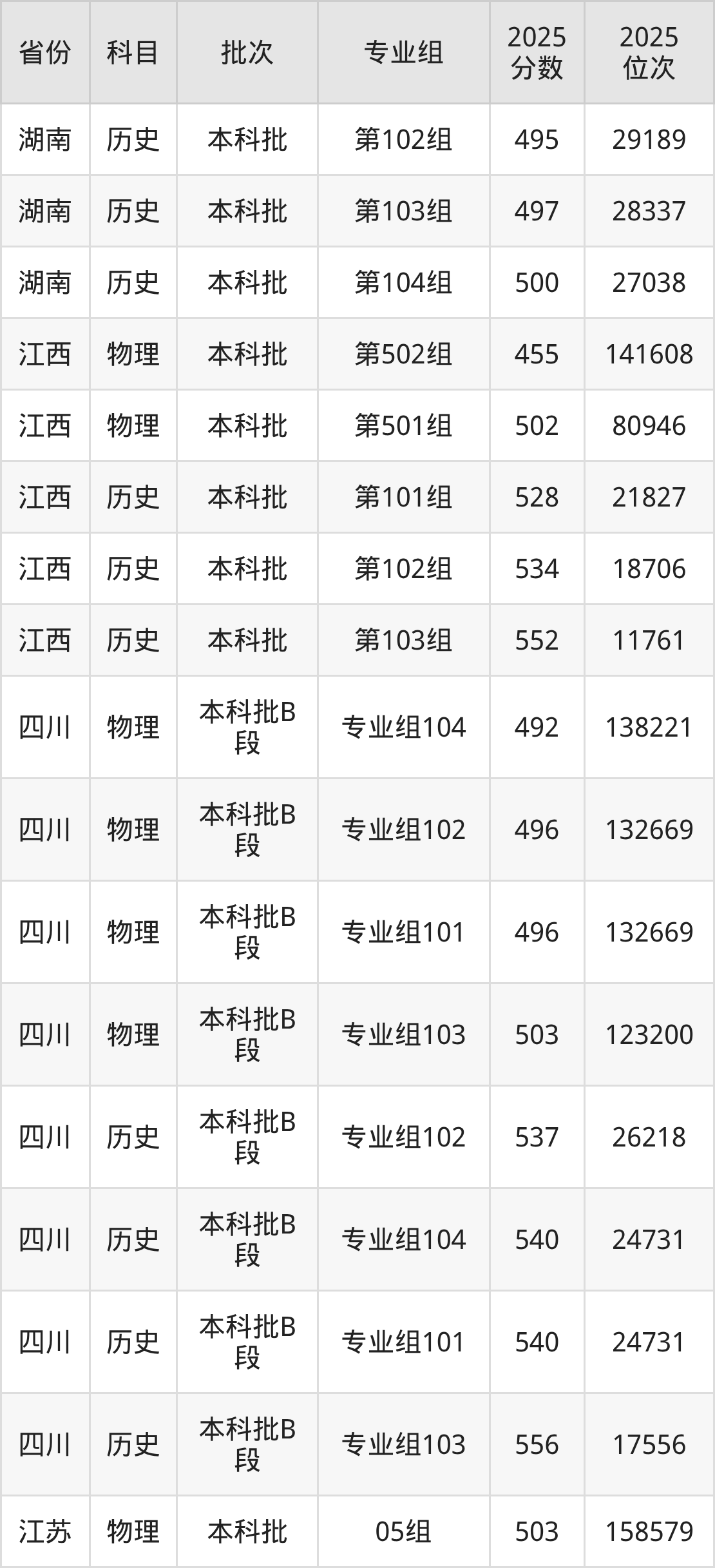 2025年投档录取最低分为497分,录取最低位次为22730名。
