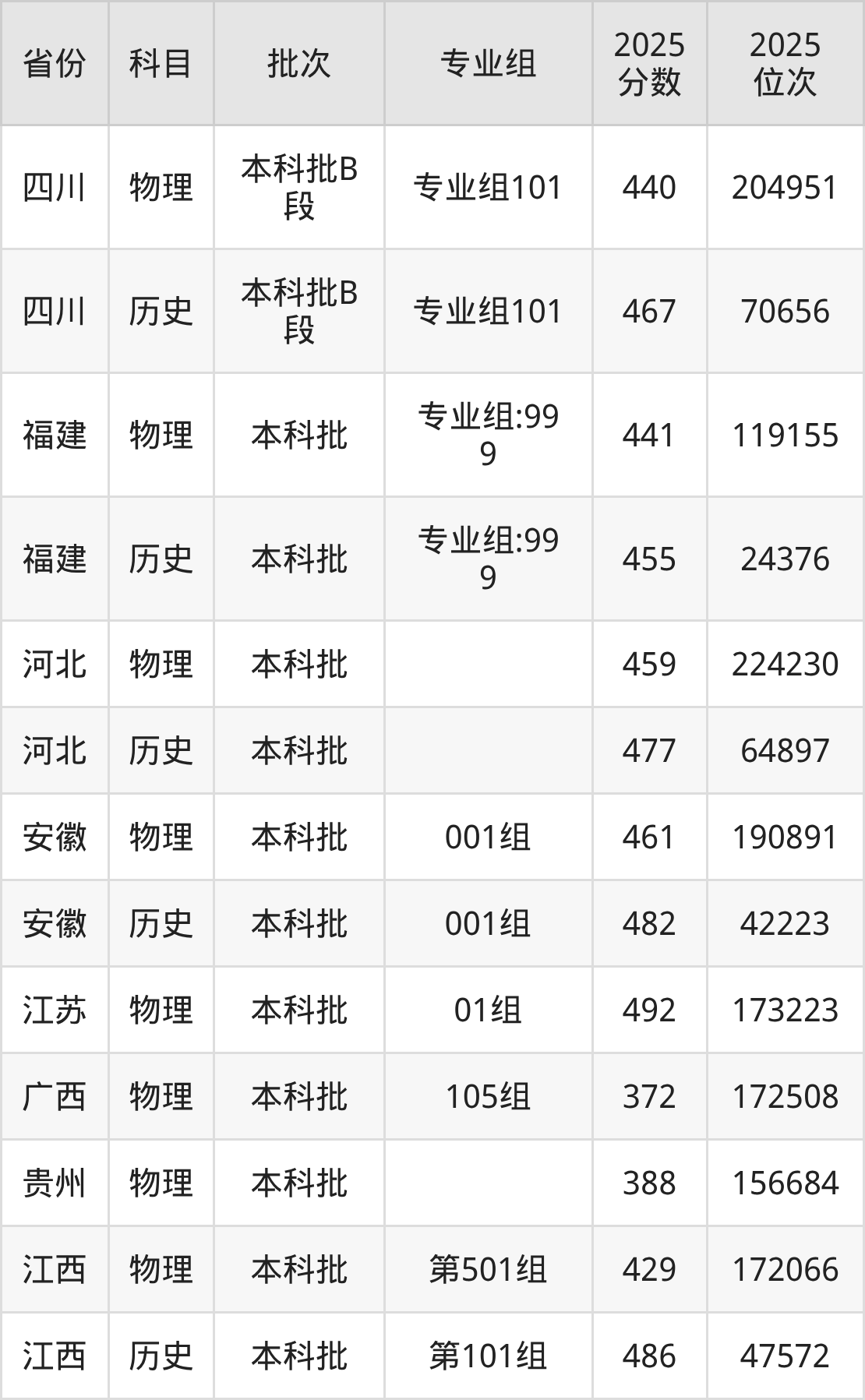 2025年在本科物理类进行招生,各专业组分数线详情如下: