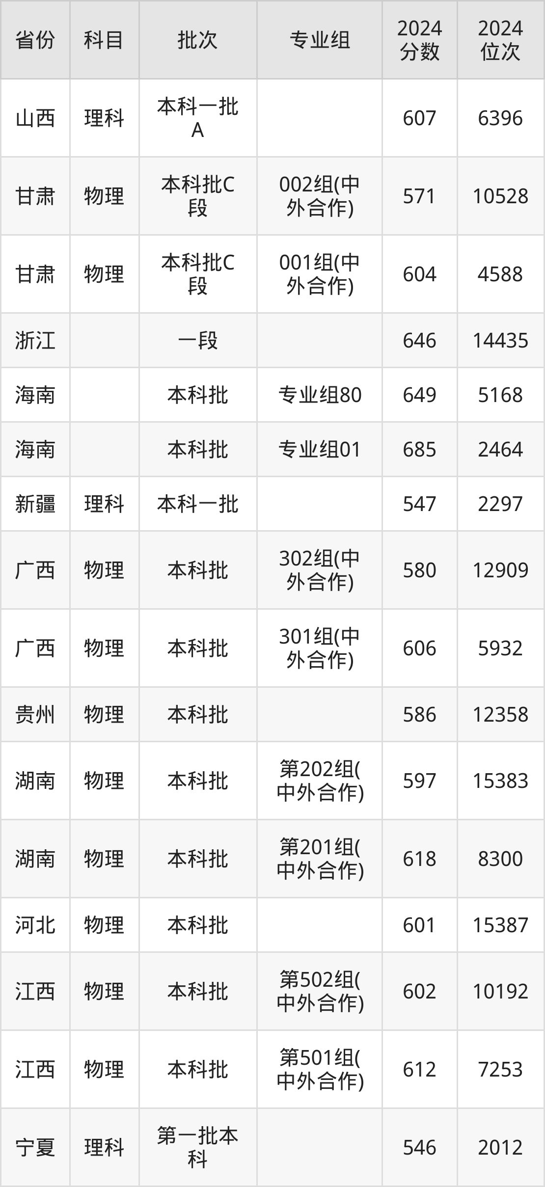 2024年在本科物理类进行招生,各专业组分数线详情如下: