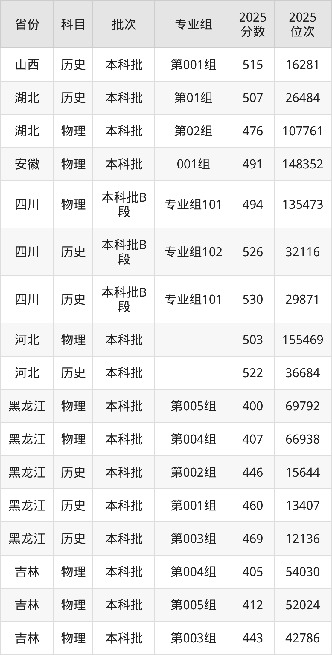 普通类本科历史类最低513分,本科物理类最低471分
