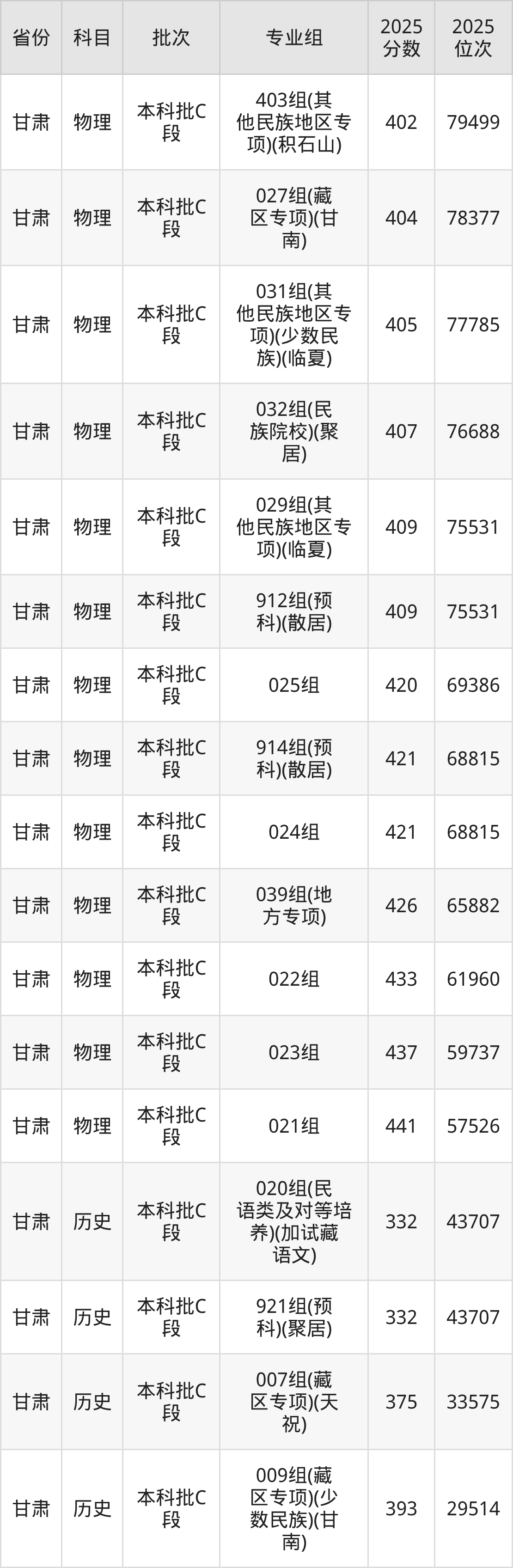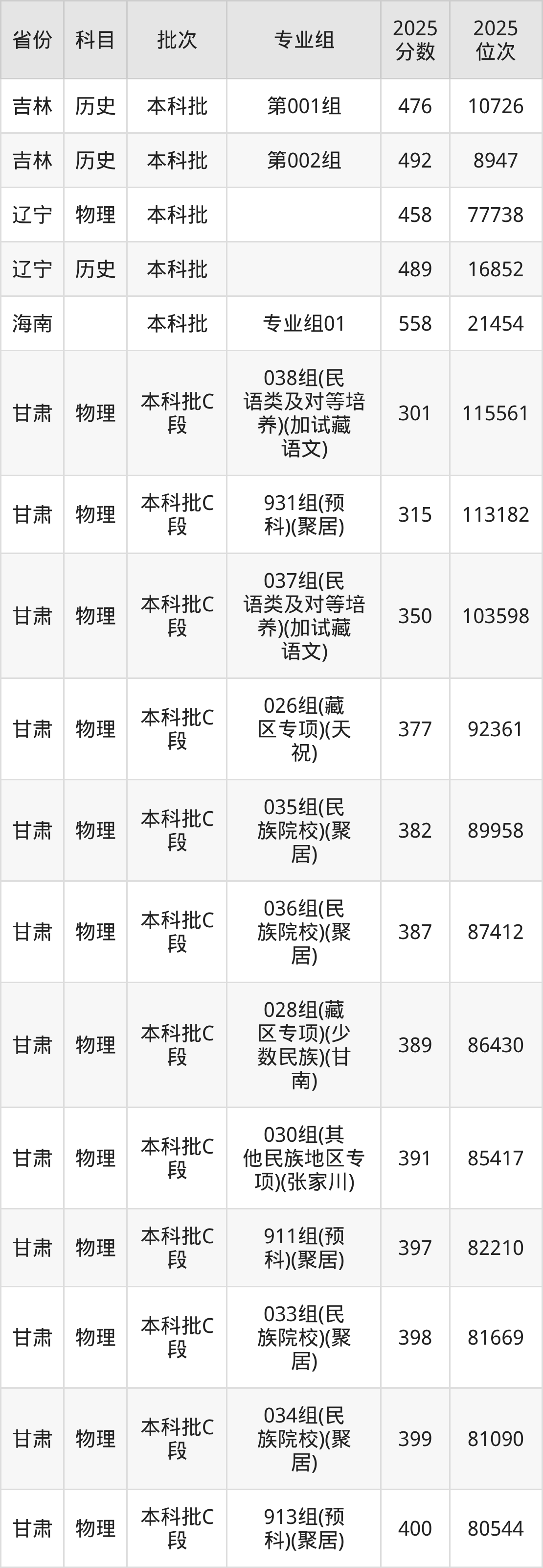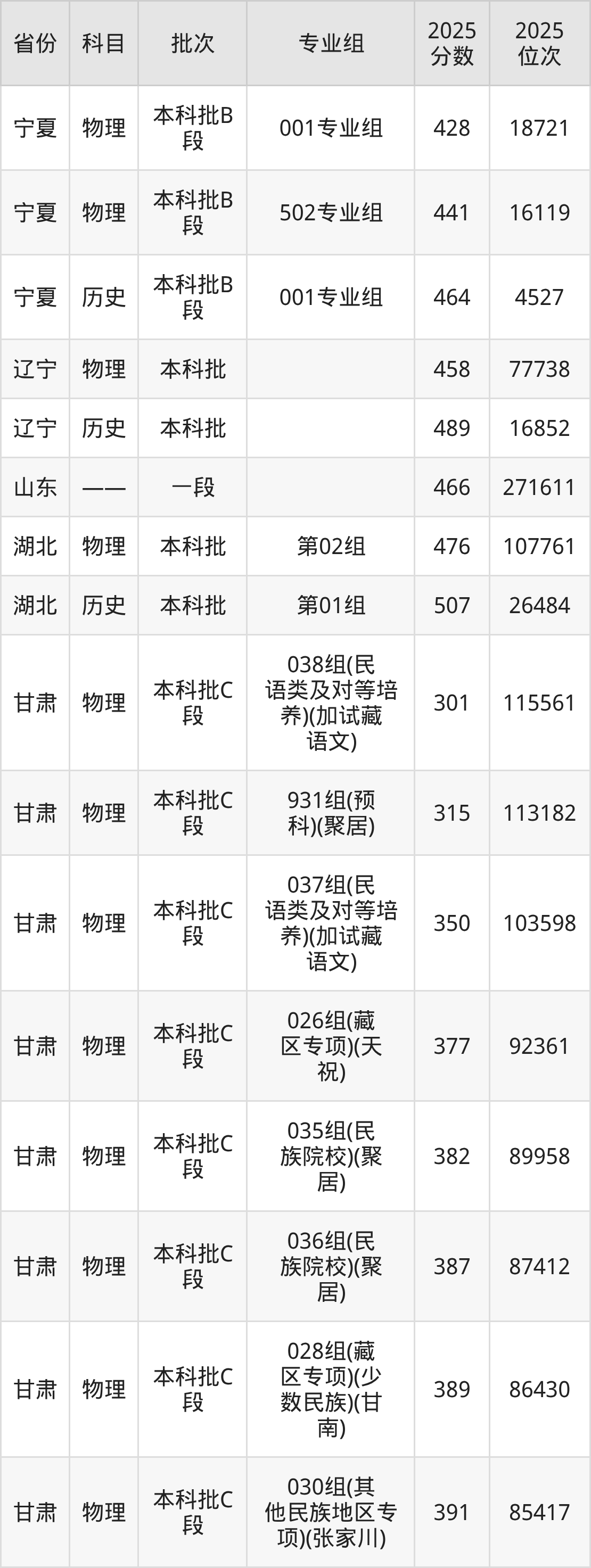 甘肃民族师范学院026专业组(藏区专项)(天祝):2025年投档录取最低分为377分,录取最低位次为92361名。