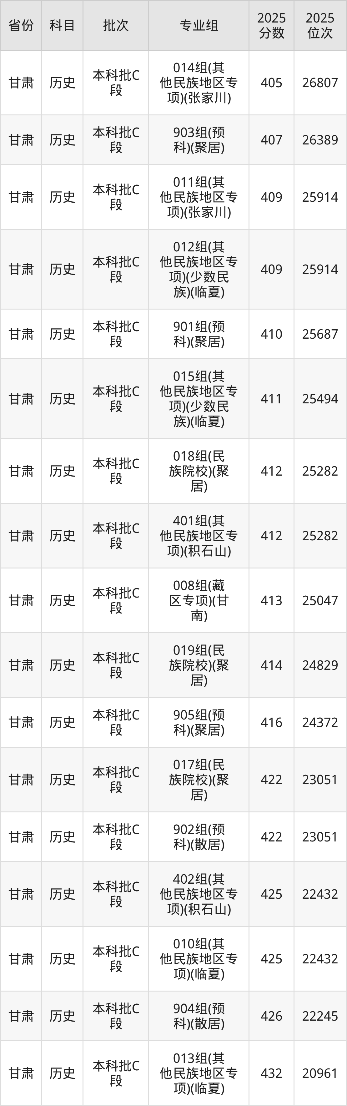 甘肃民族师范学院901专业组(预科)(聚居少数民族):2025年投档录取最低分为410分,录取最低位次为25687名。