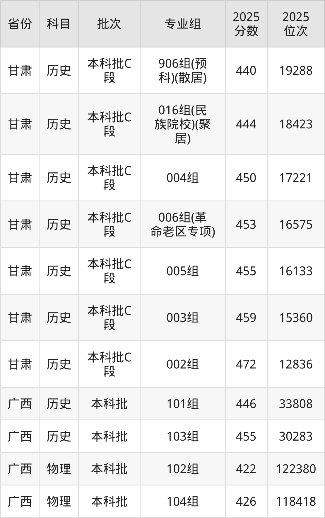 甘肃民族师范学院第002组:2025年投档录取最低分为453分,录取最低位次为44142名。