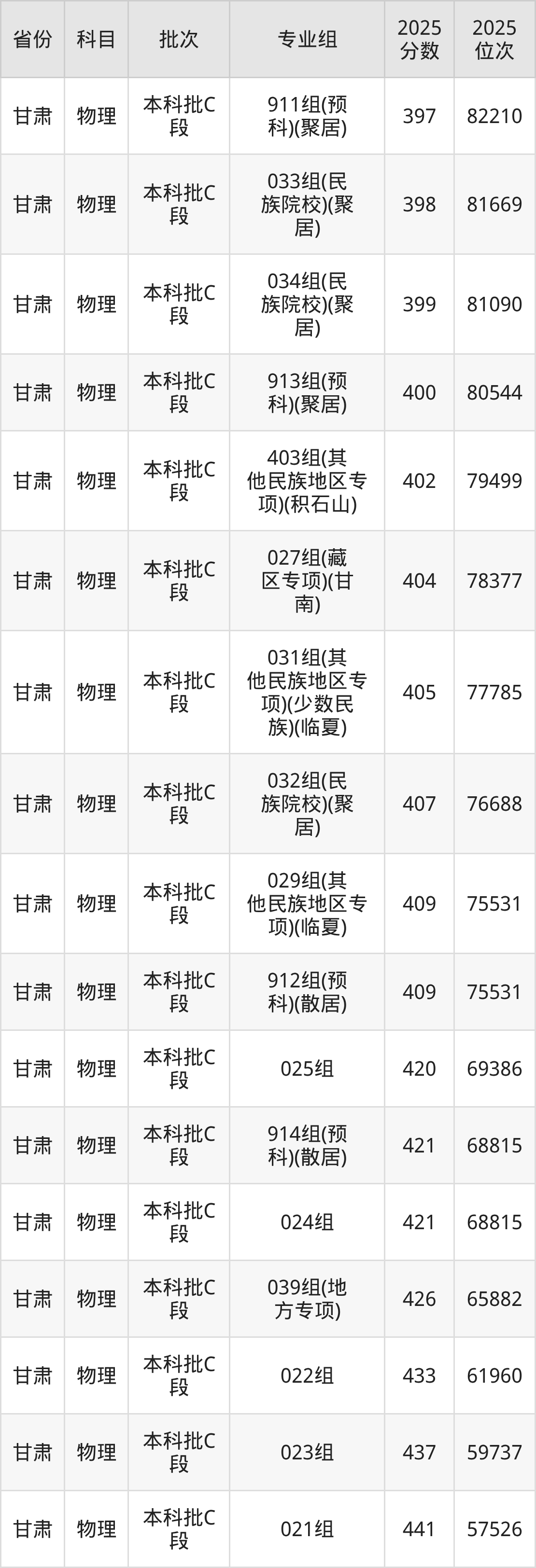 甘肃民族师范学院036专业组(民族院校)(聚居少数民族):2025年投档录取最低分为387分,录取最低位次为87412名。