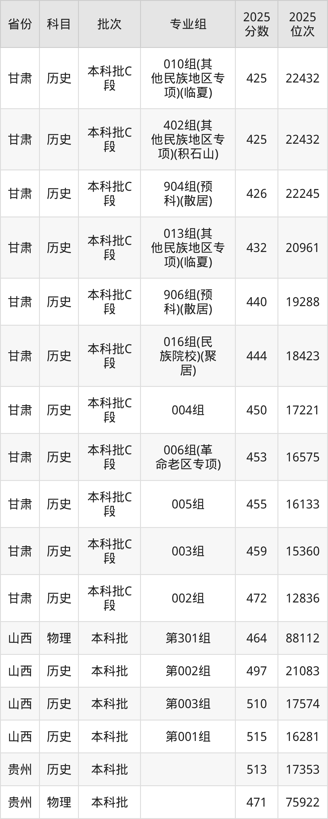 甘肃民族师范学院第003组:2025年投档录取最低分为510分,录取最低位次为17574名。
