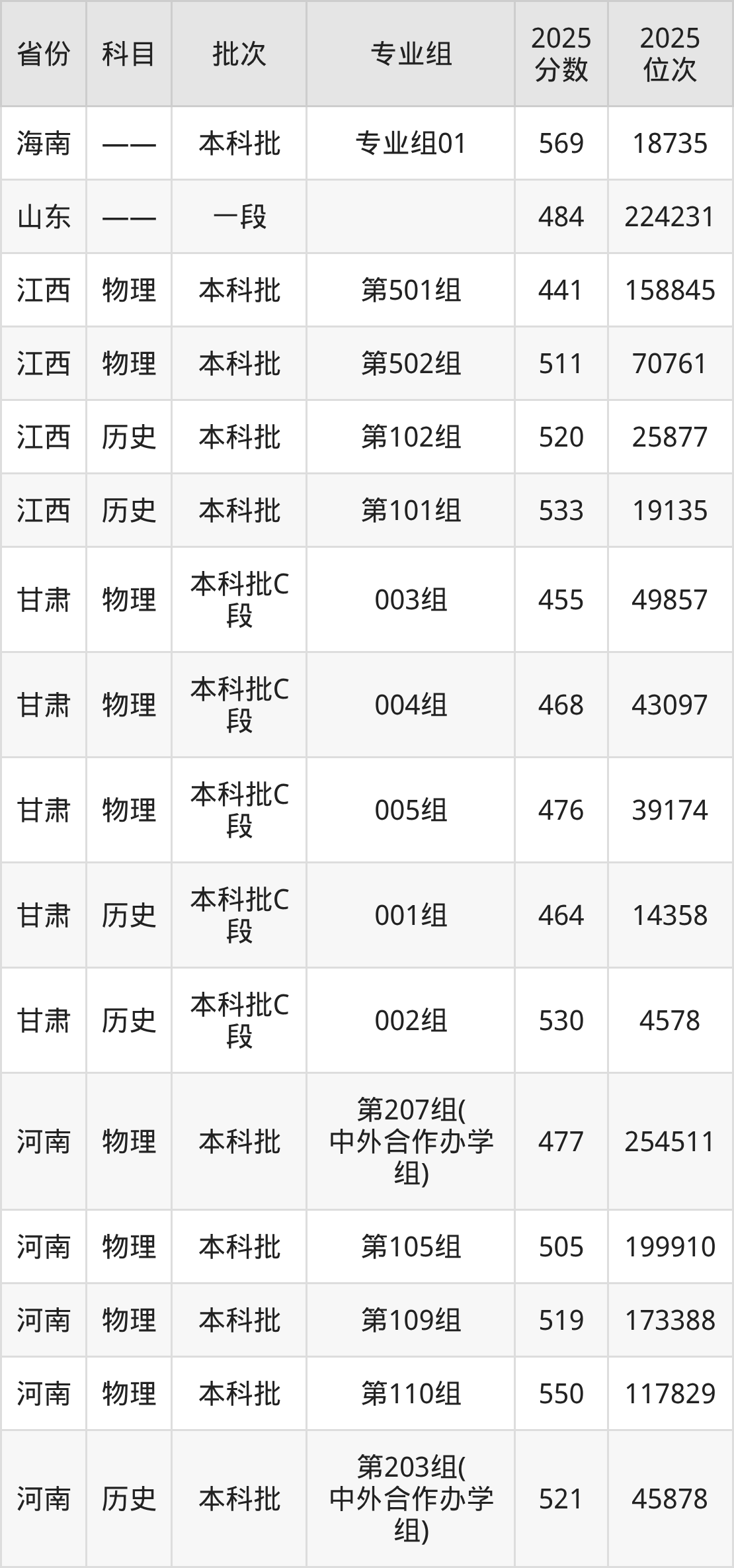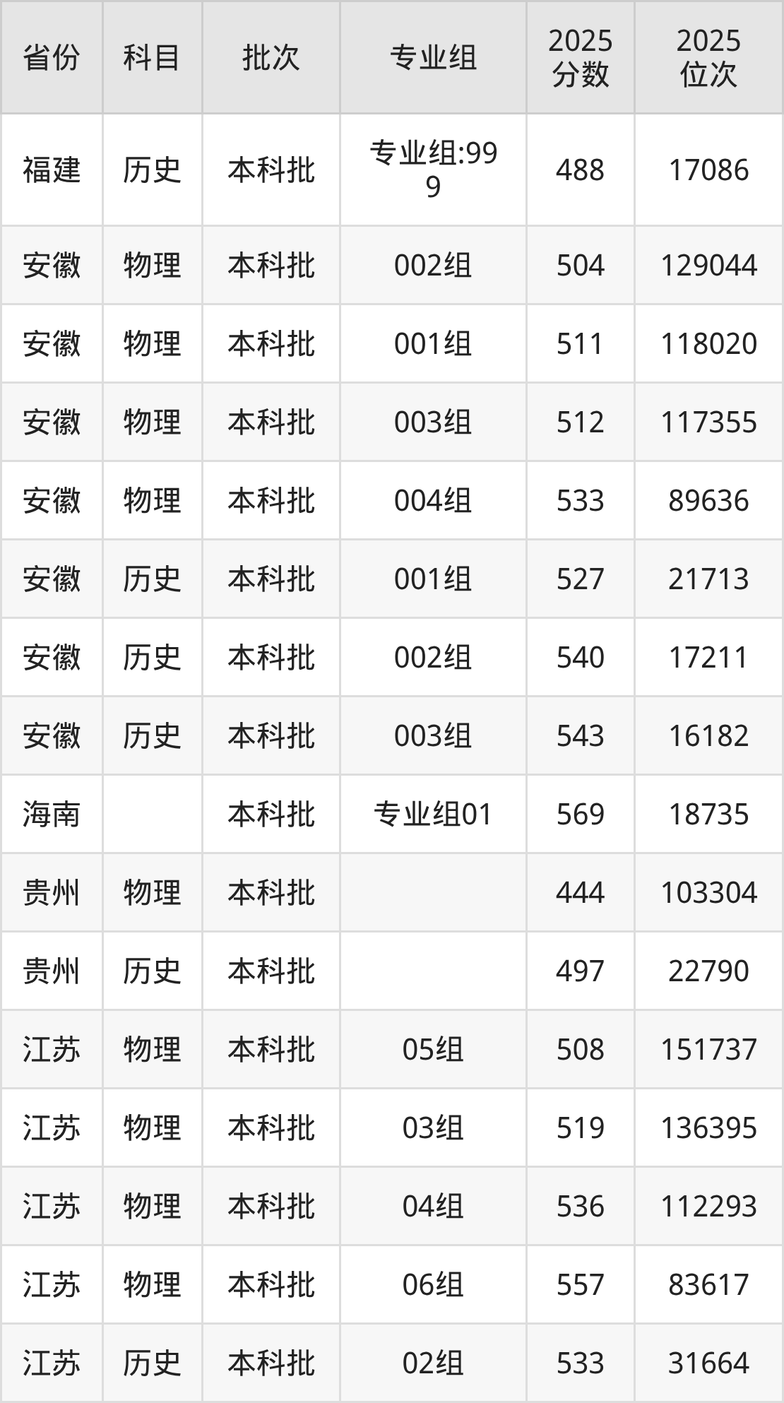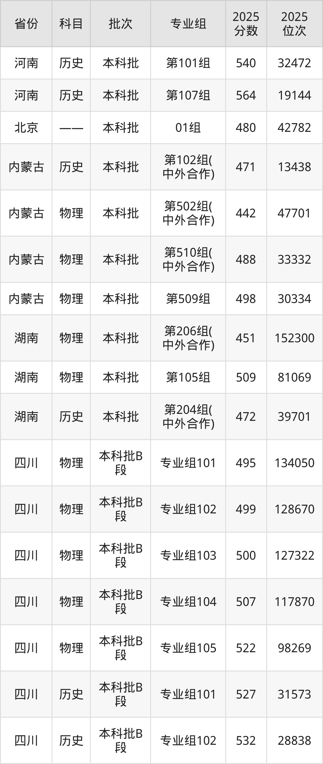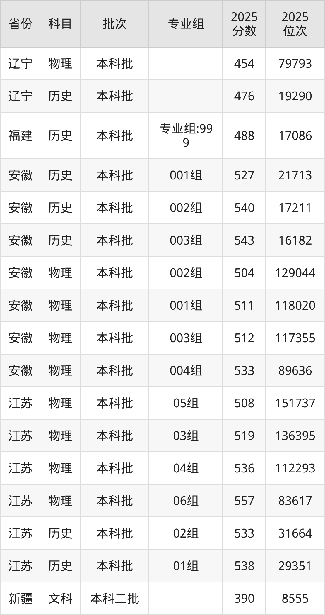 2025年在本科历史类进行招生,各专业组分数线详情如下: