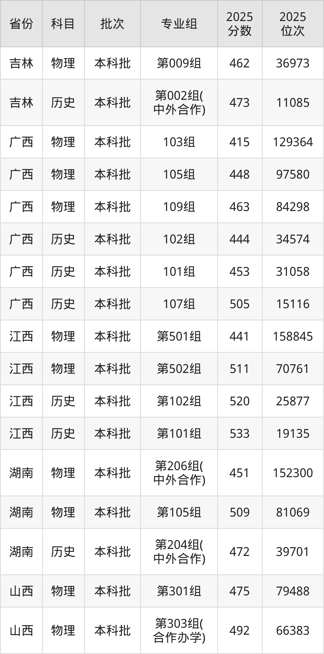 普通类本科历史类最低506分,本科物理类最低475分