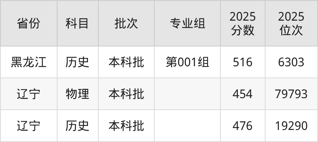 沈阳师范大学第001组:2025年投档录取最低分为516分,录取最低位次为6303名。