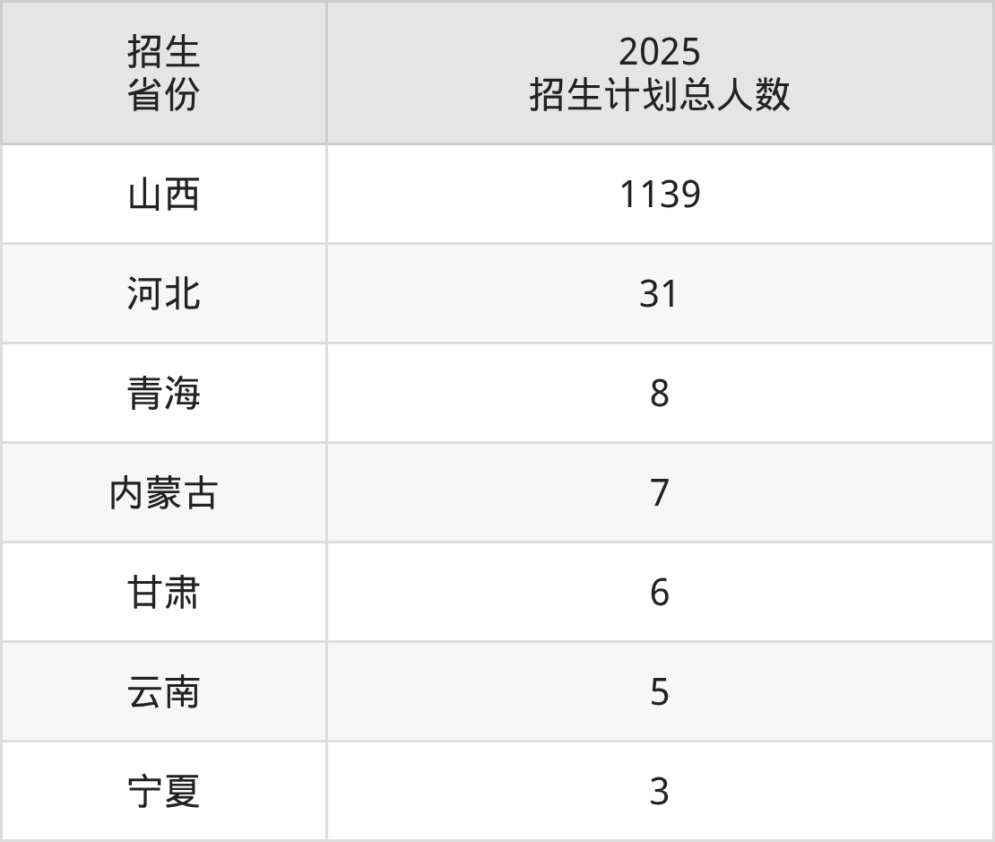 2025年山西林业职业技术学院面向全国7个省市开展专科招生;招生专业共29个,招生人数共1199人。2025年在山西省招生计划总人数是1139人,其中,山西林业职业技术学院在山西省招生人数最多的是畜牧兽医。山西林业职业技术学院在各省具体招生人数情况如下表。