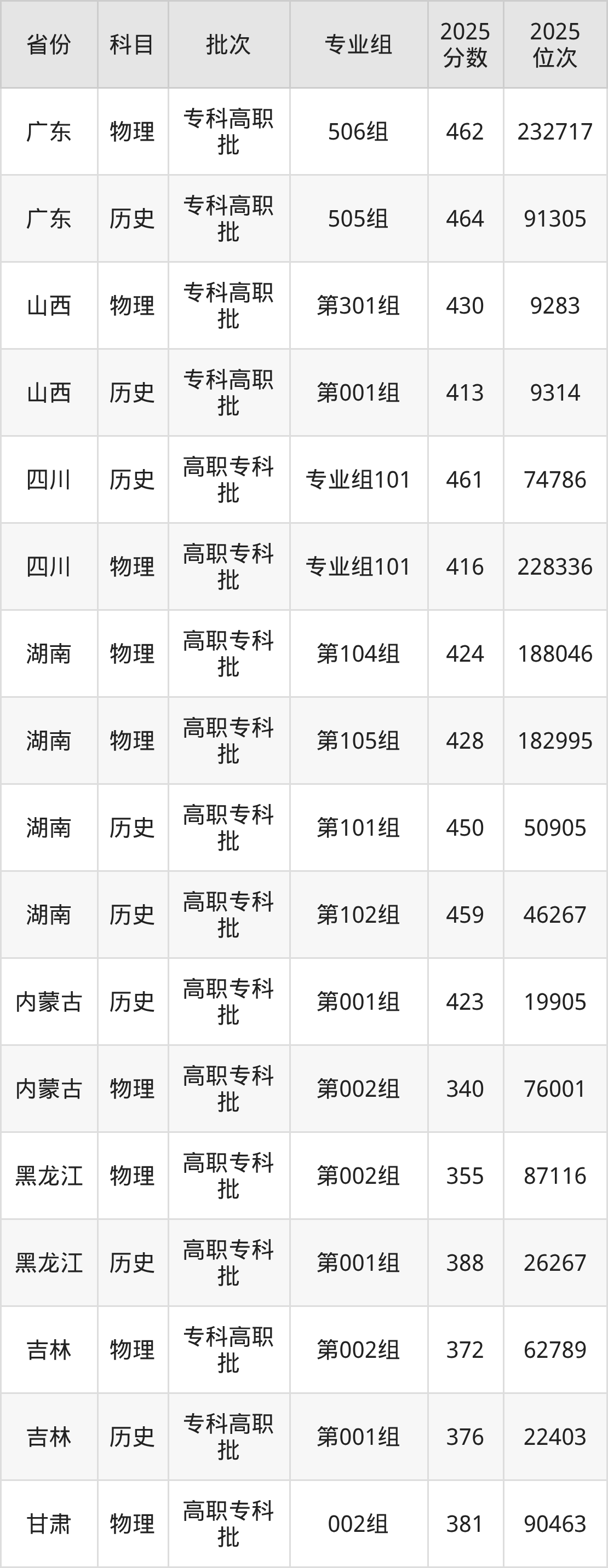 湖南大众传媒职业技术学院506组:2025年投档录取最低分为462分,录取最低位次为232717名。