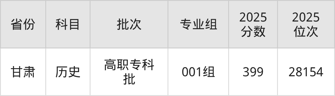 湖南大众传媒职业技术学院001专业组:2025年投档录取最低分为399分,录取最低位次为28154名。