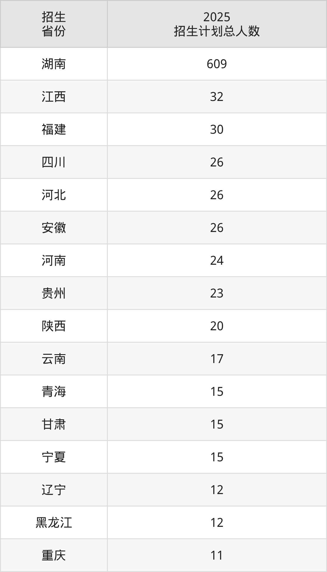 2025年湖南大众传媒职业技术学院面向全国23个省市开展专科招生;招生专业共22个,招生人数共969人。2025年在湖南省招生计划总人数是609人,其中,湖南大众传媒职业技术学院在湖南省招生人数最多的是传播与策划。湖南大众传媒职业技术学院在各省具体招生人数情况如下表。