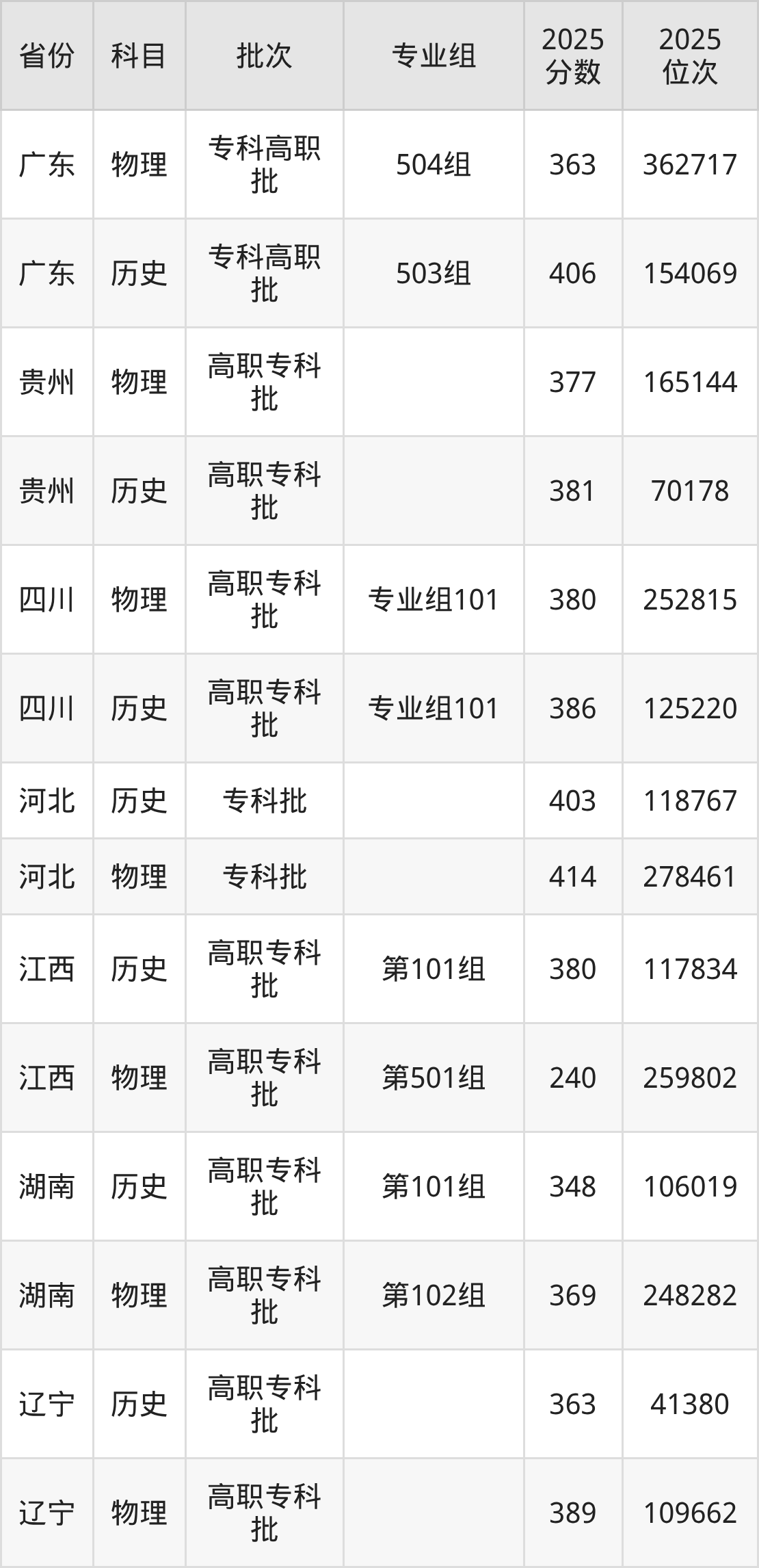 江西应用工程职业学院专业组101:2025年投档录取最低分为380分,录取最低位次为252815名。