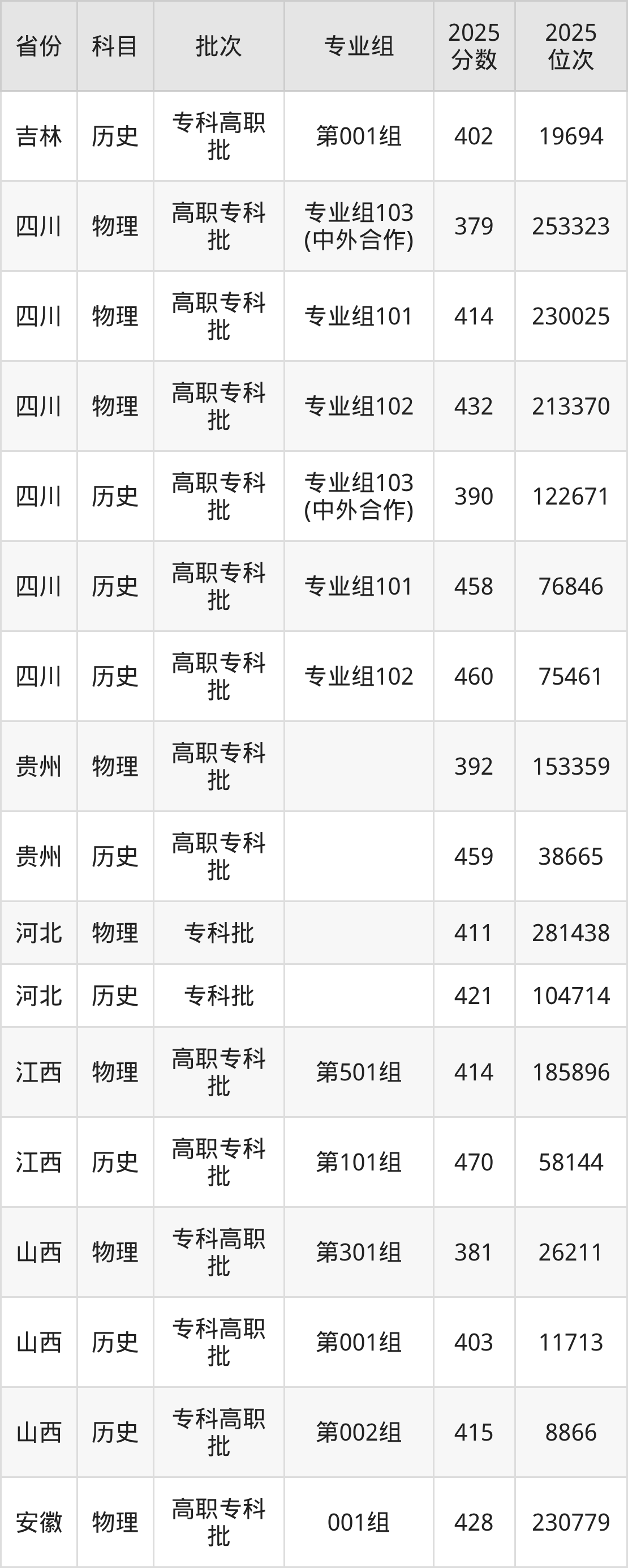 下面是2025年重庆工商职业学院全国录取分数线一览表,请查阅。
