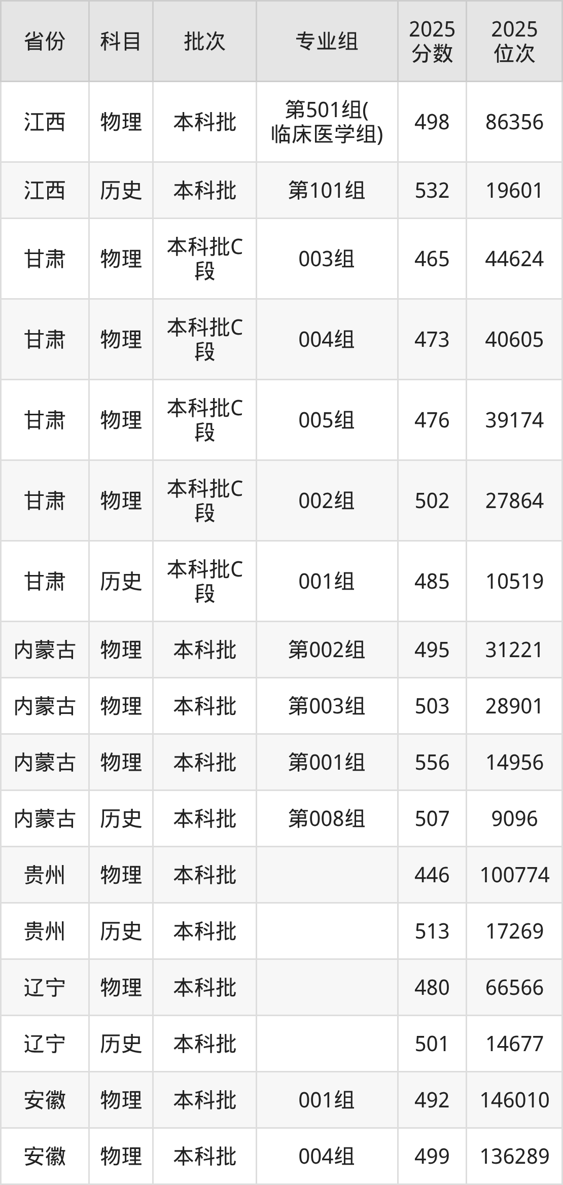 沈阳医学院第501组(临床医学组):2025年投档录取最低分为498分,录取最低位次为86356名。