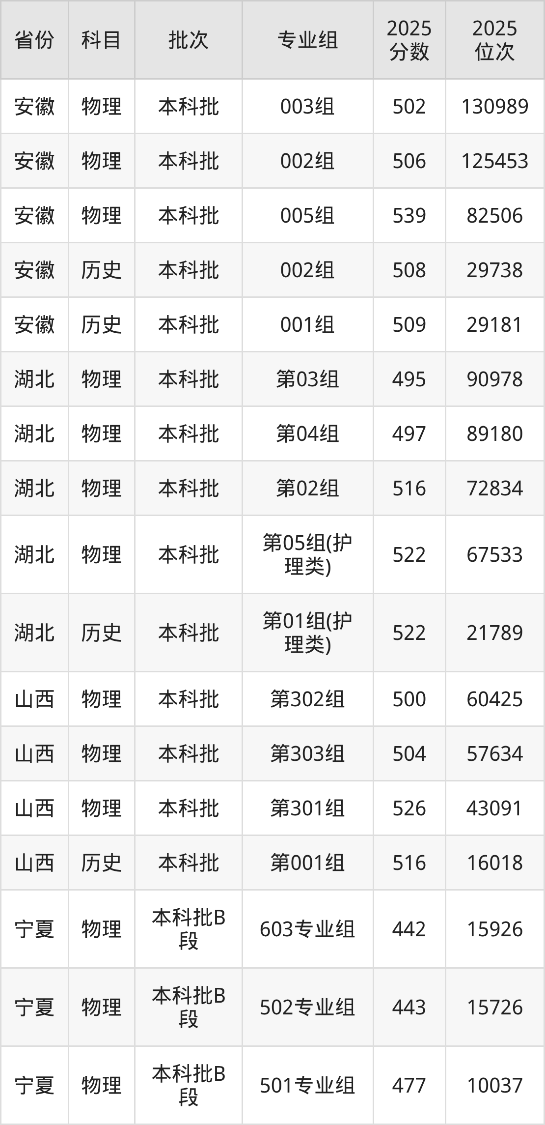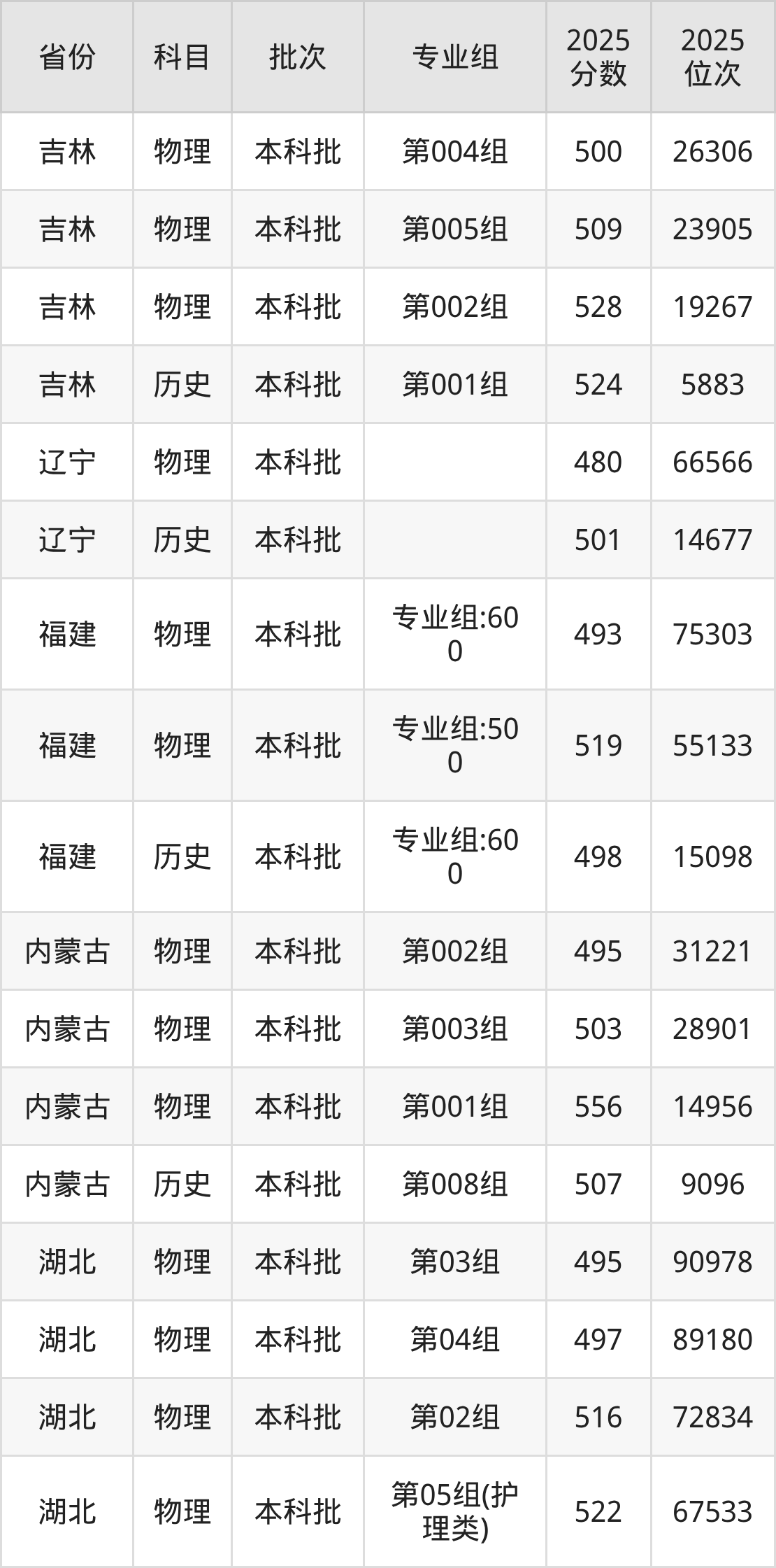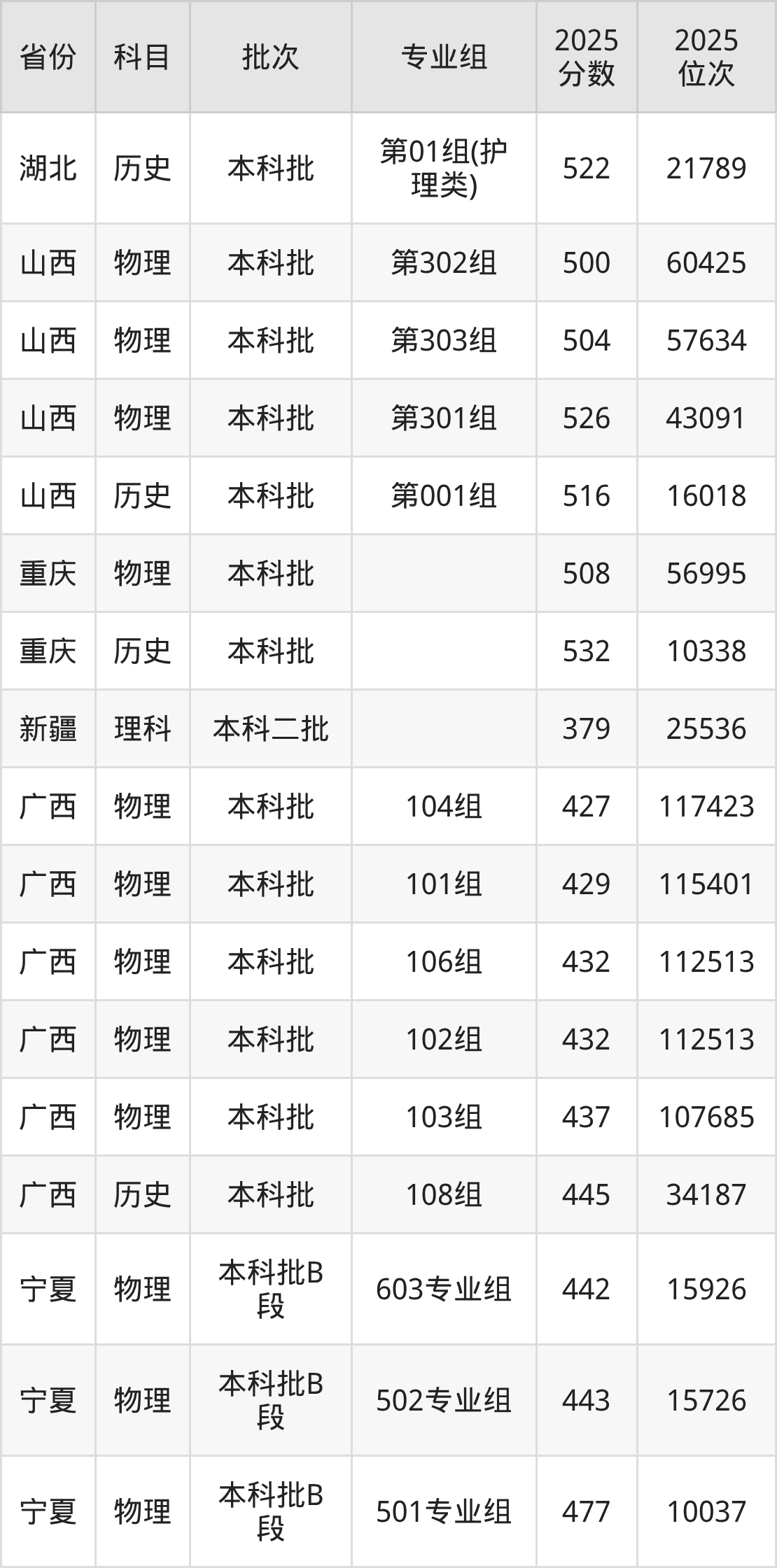 沈阳医学院第001组:2025年投档录取最低分为461分,录取最低位次为13262名。