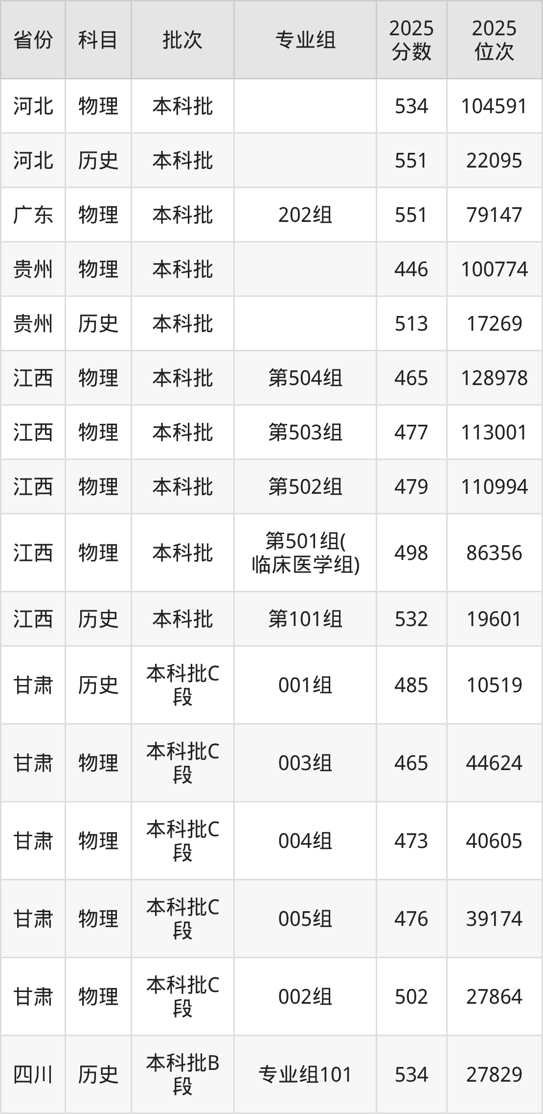 下面是2025年沈阳医学院全国录取分数线一览表,请查阅。