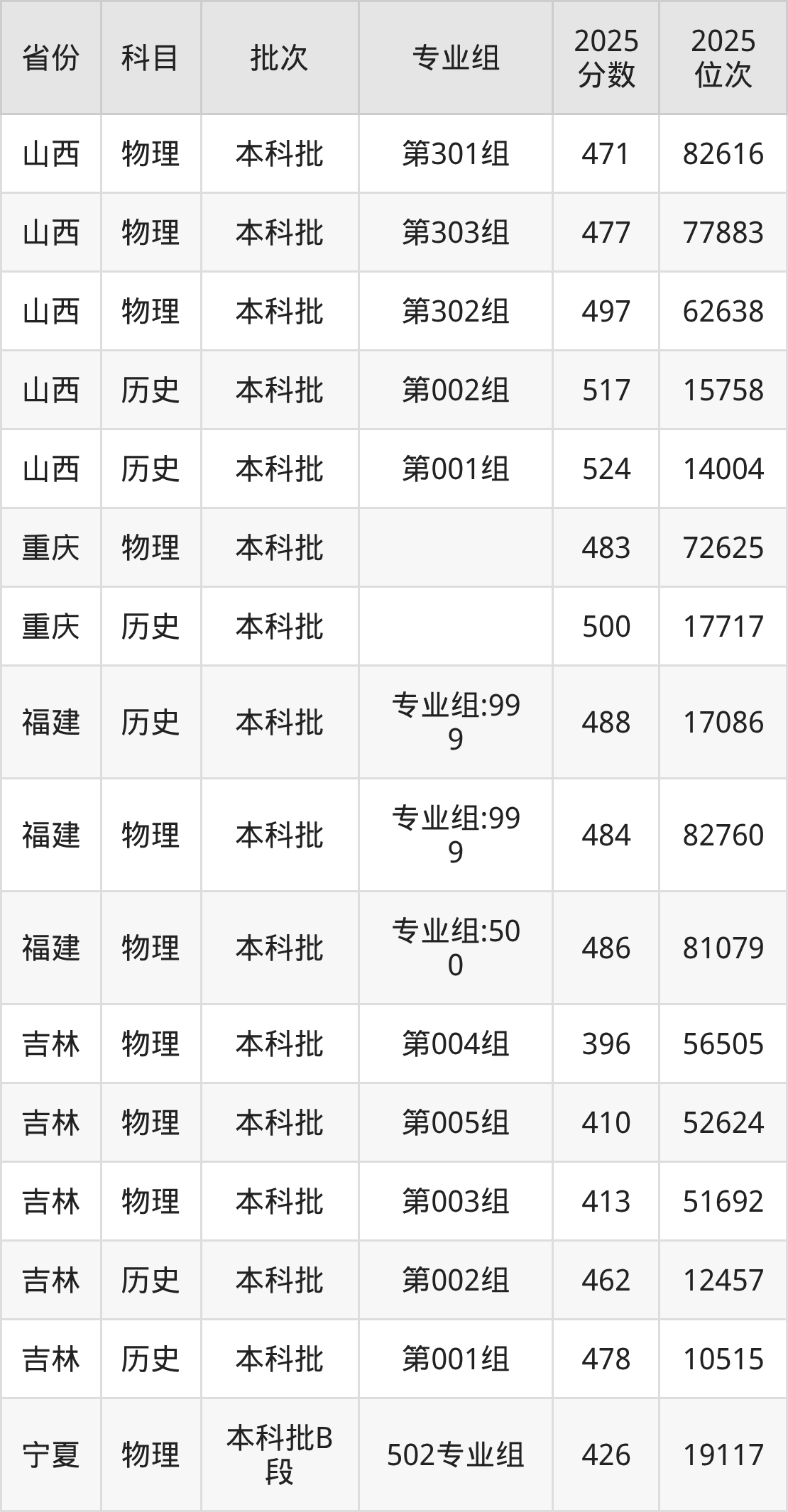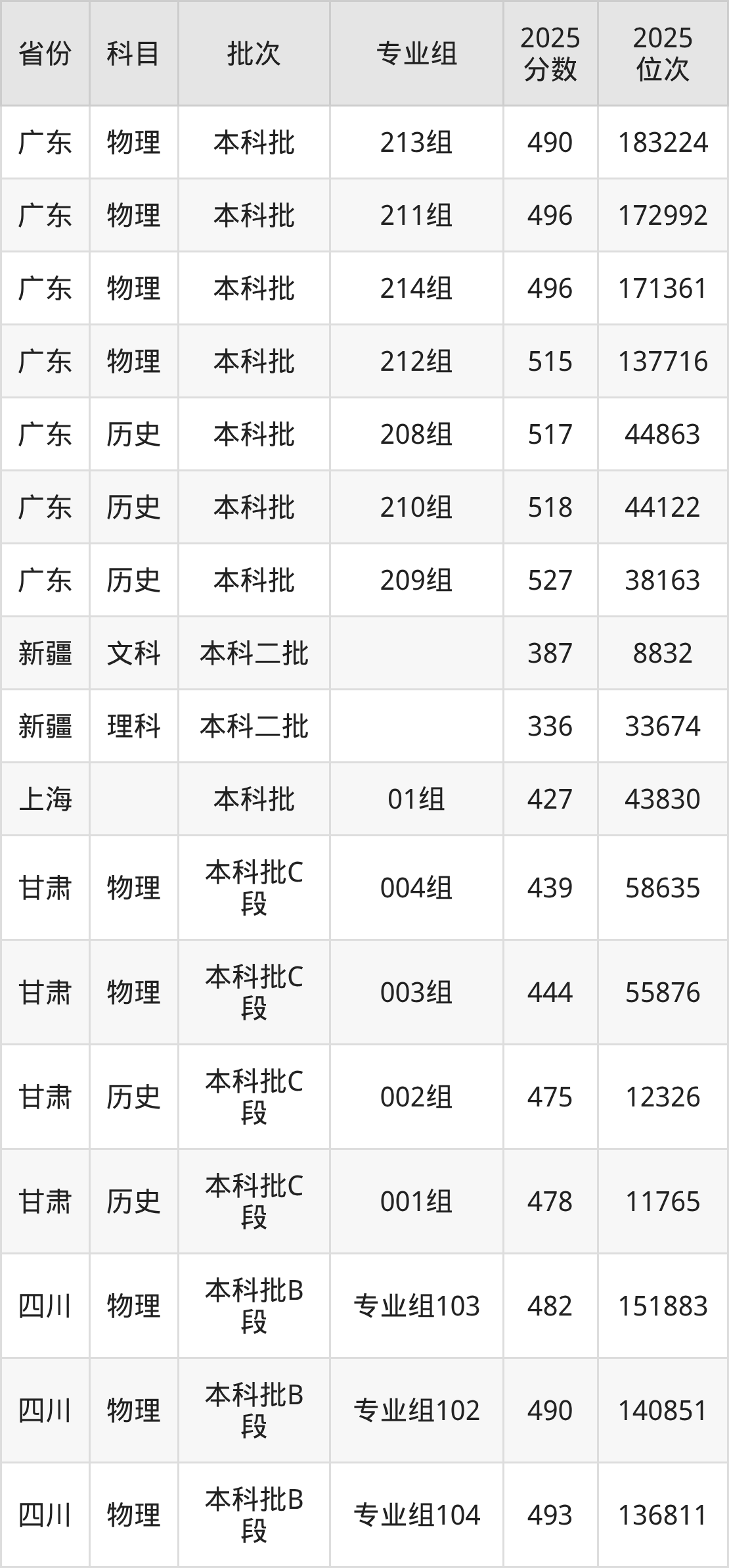 2025年投档录取最低分为483分,录取最低位次为72625名。