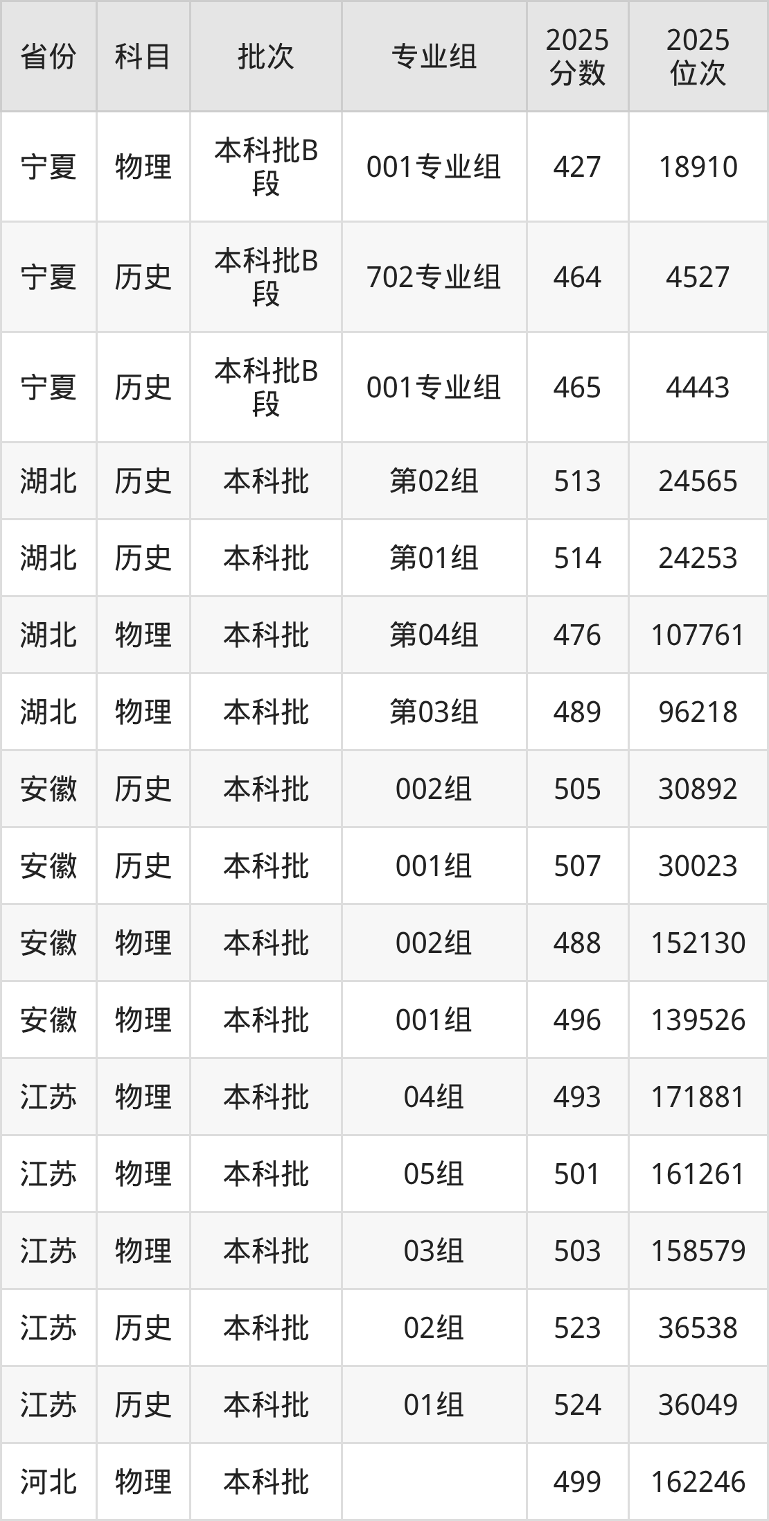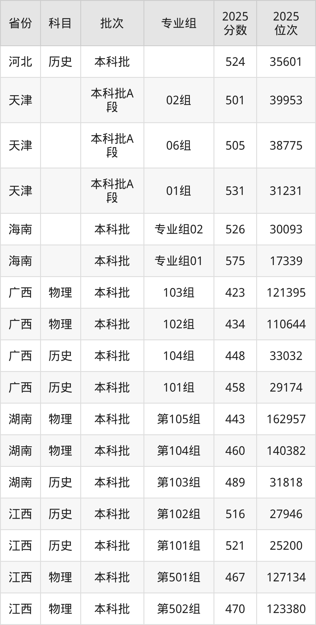 2025年投档录取最低分为500分,录取最低位次为17717名。