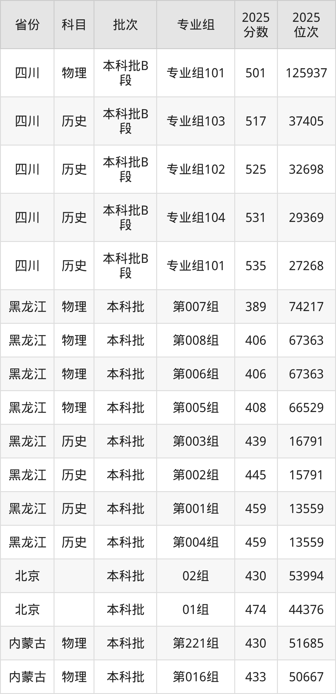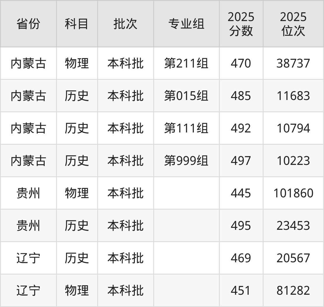 2025年投档录取最低分为469分,录取最低位次为20567名。