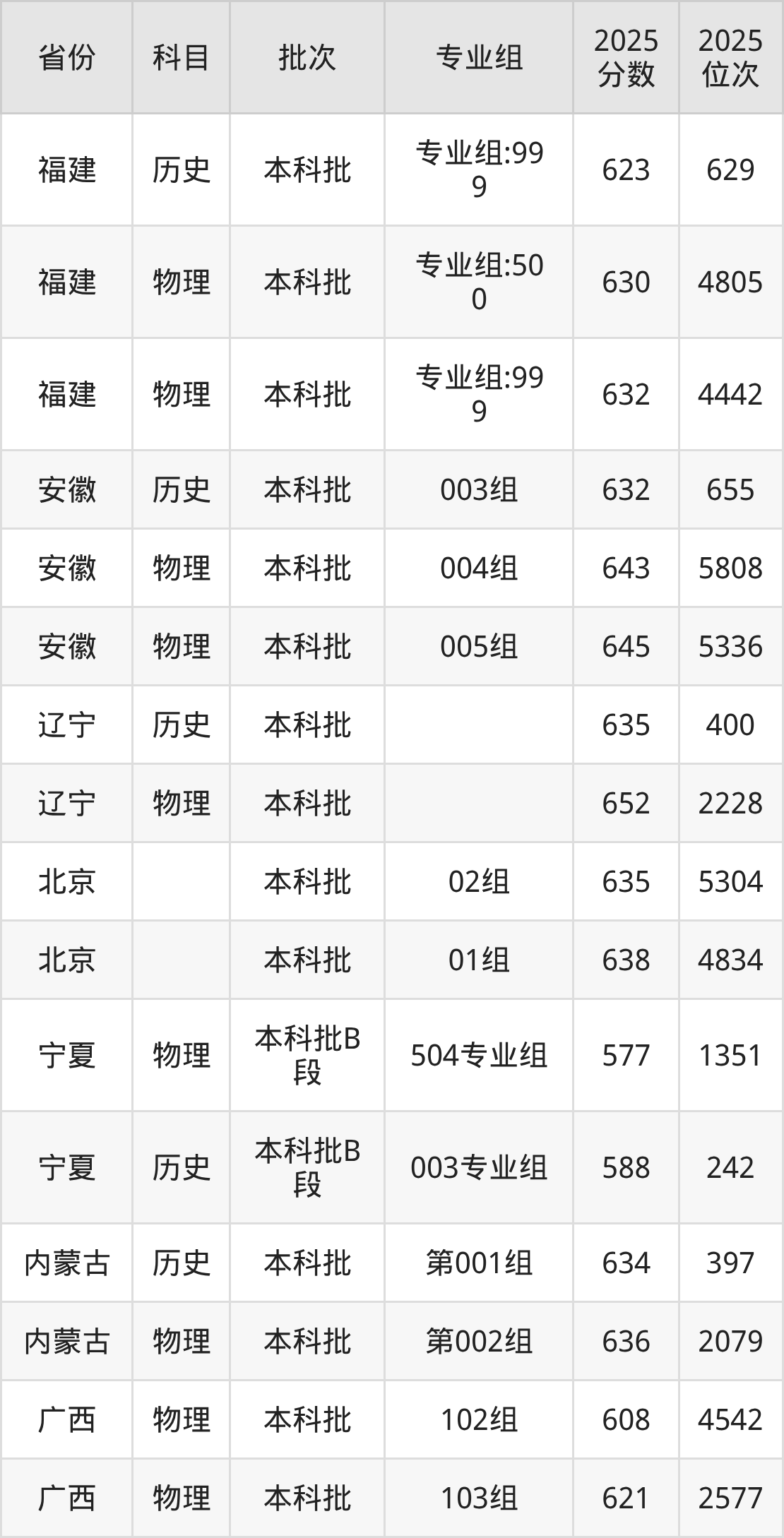 北京师范大学(珠海校区)第005组:2025年投档录取最低分为633分,录取最低位次为374名。