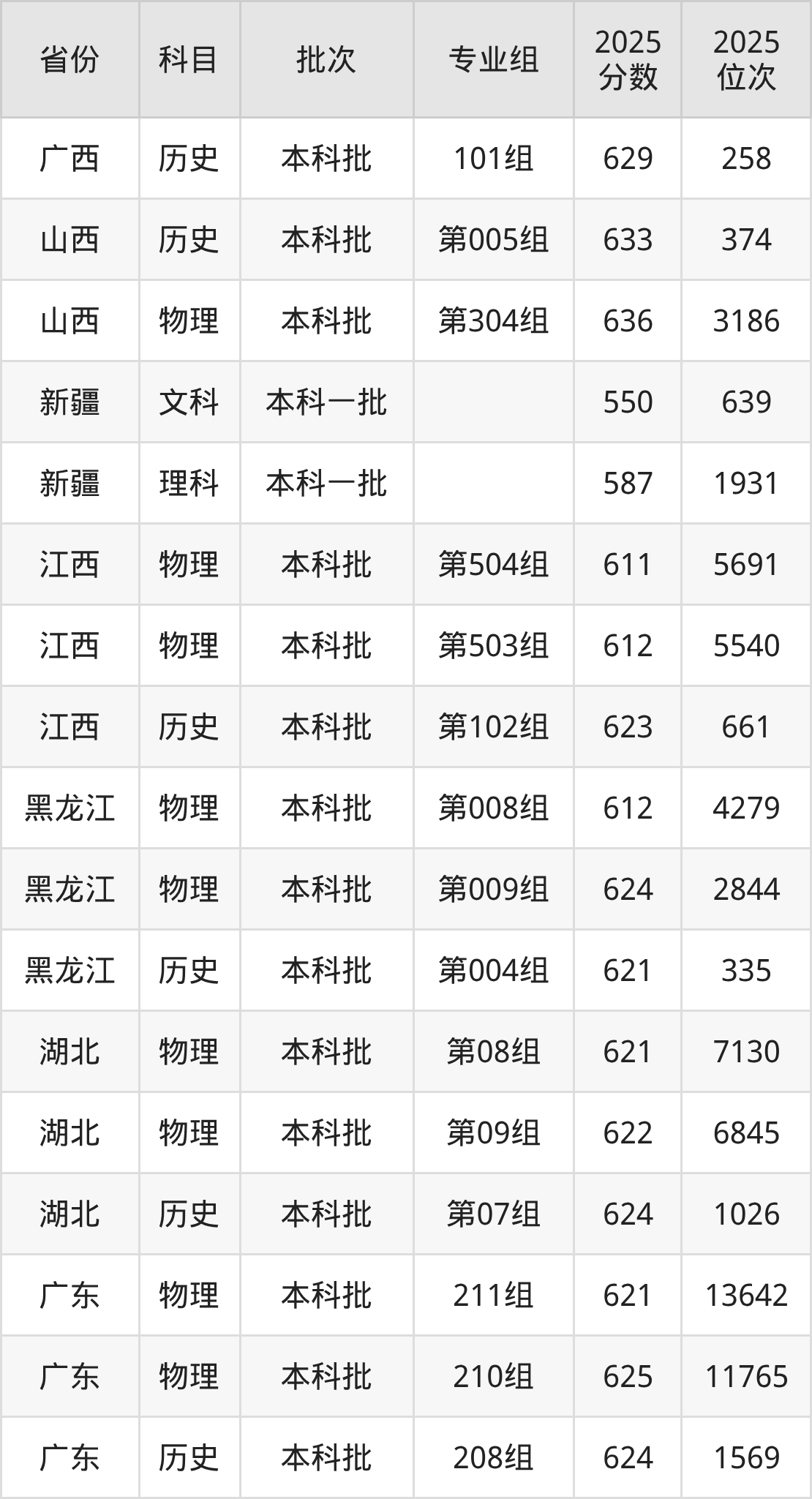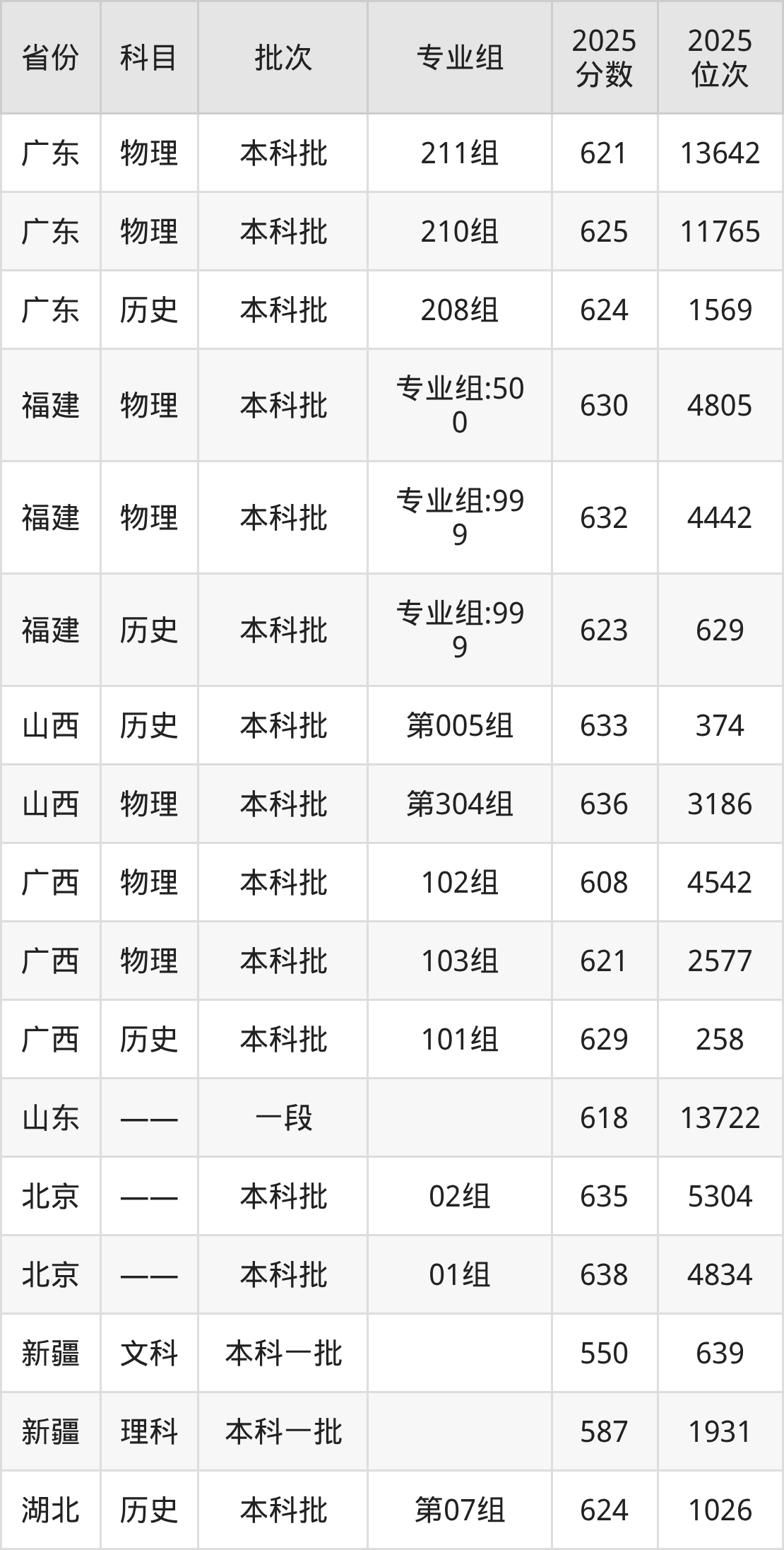 北京师范大学(珠海校区)第004组:2025年投档录取最低分为621分,录取最低位次为335名。