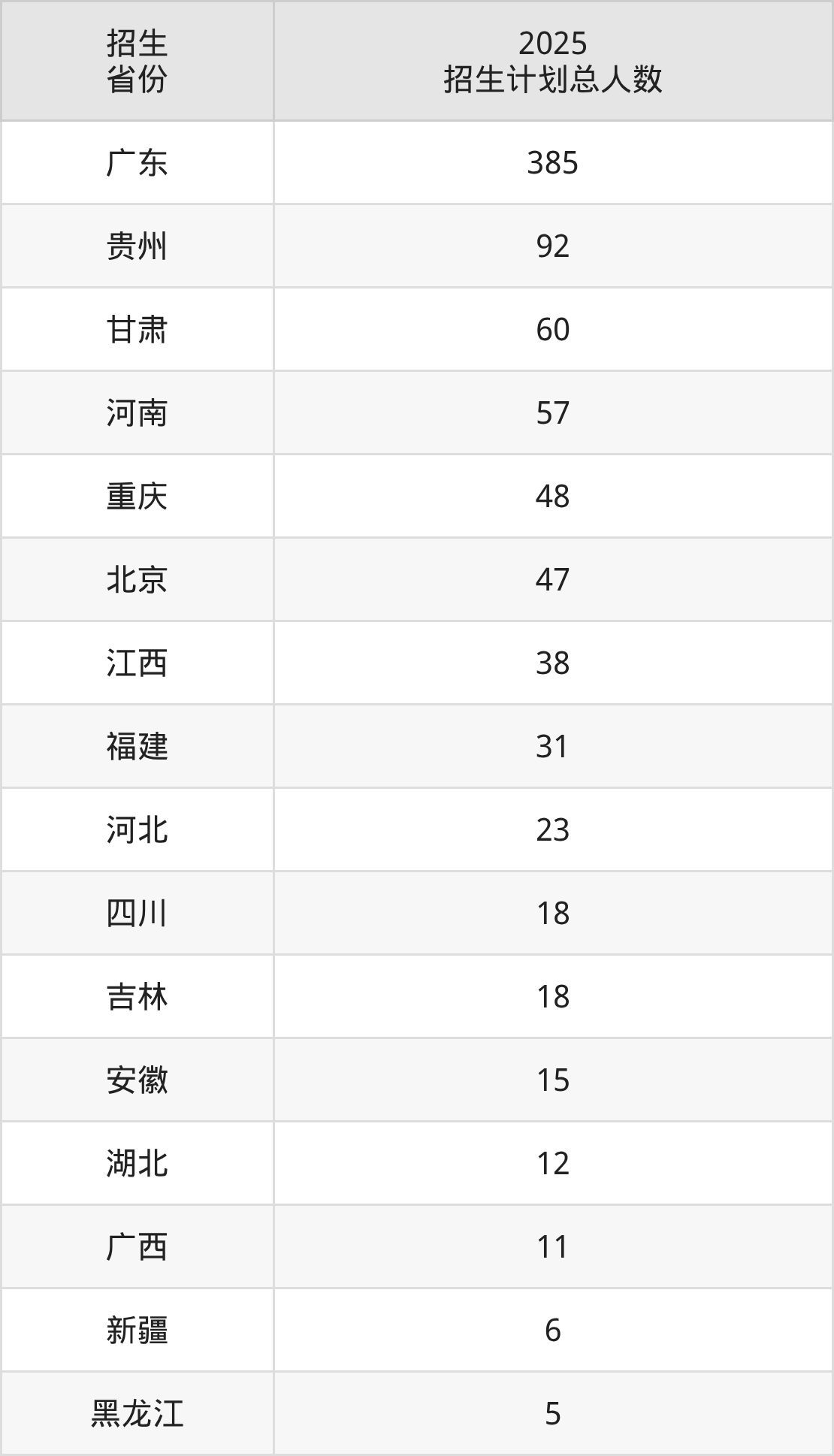 2025年北京师范大学(珠海校区)面向全国21个省市开展本科招生;招生专业共14个,招生人数共879人。2025年在广东省招生计划总人数是385人,其中,北京师范大学(珠海校区)在广东省招生人数最多的是数学类。北京师范大学(珠海校区)在各省具体招生人数情况如下表。