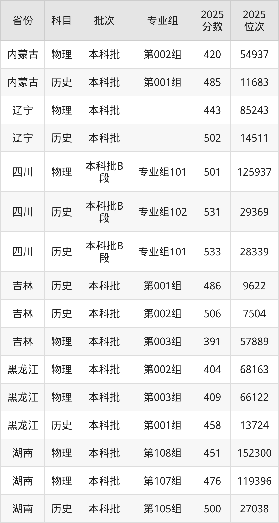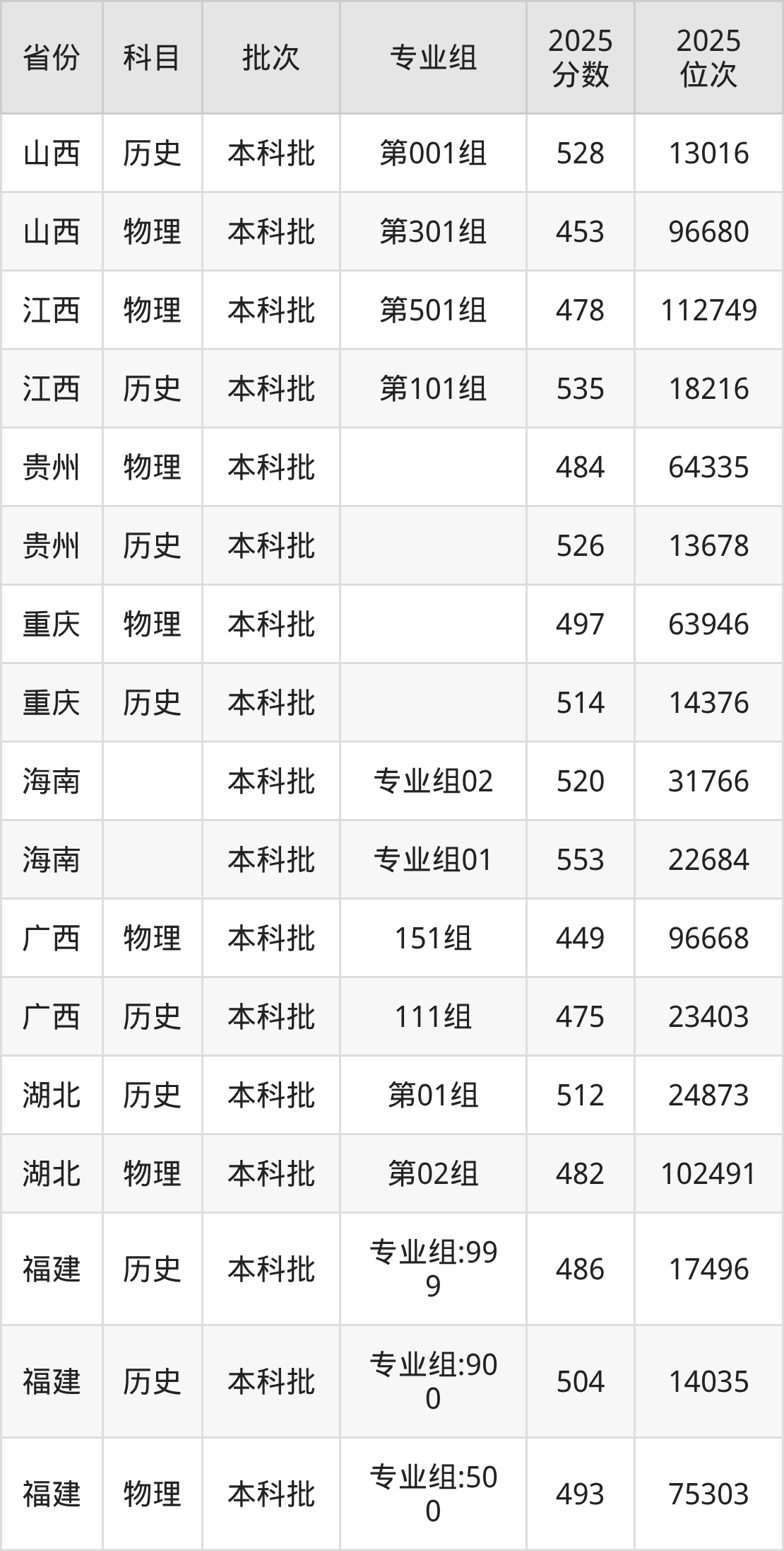 普通类本科历史类最低486分,本科物理类最低493分