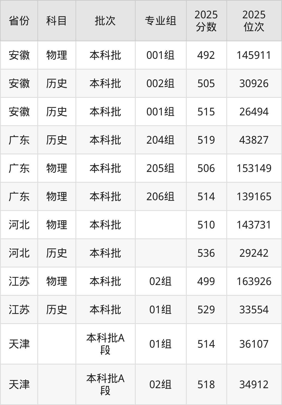 普通类本科物理类最低492分,本科历史类最低505分
