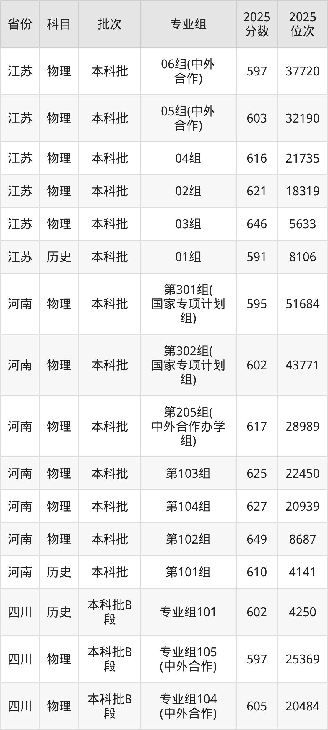 中国药科大学06组(中外合作办学):2025年投档录取最低分为597分,录取最低位次为37720名。