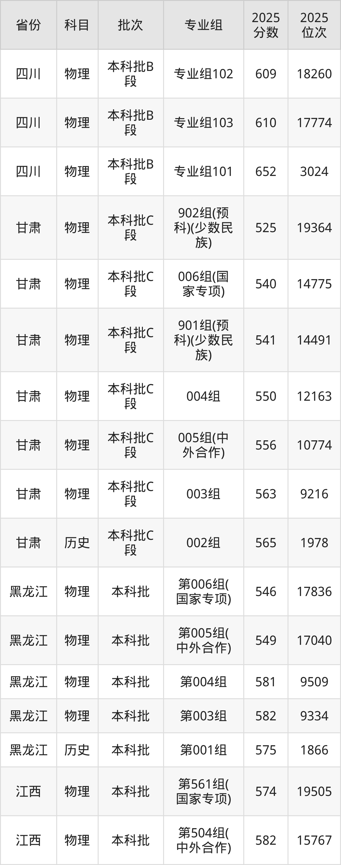 中国药科大学502组(国家专项):2025年投档录取最低分为549分,录取最低位次为24988名。