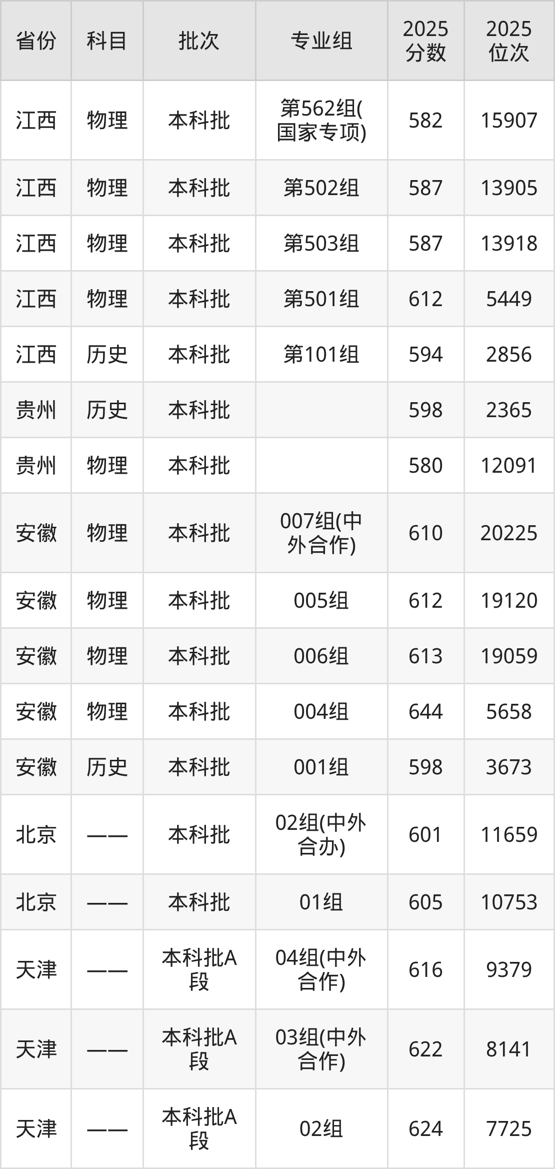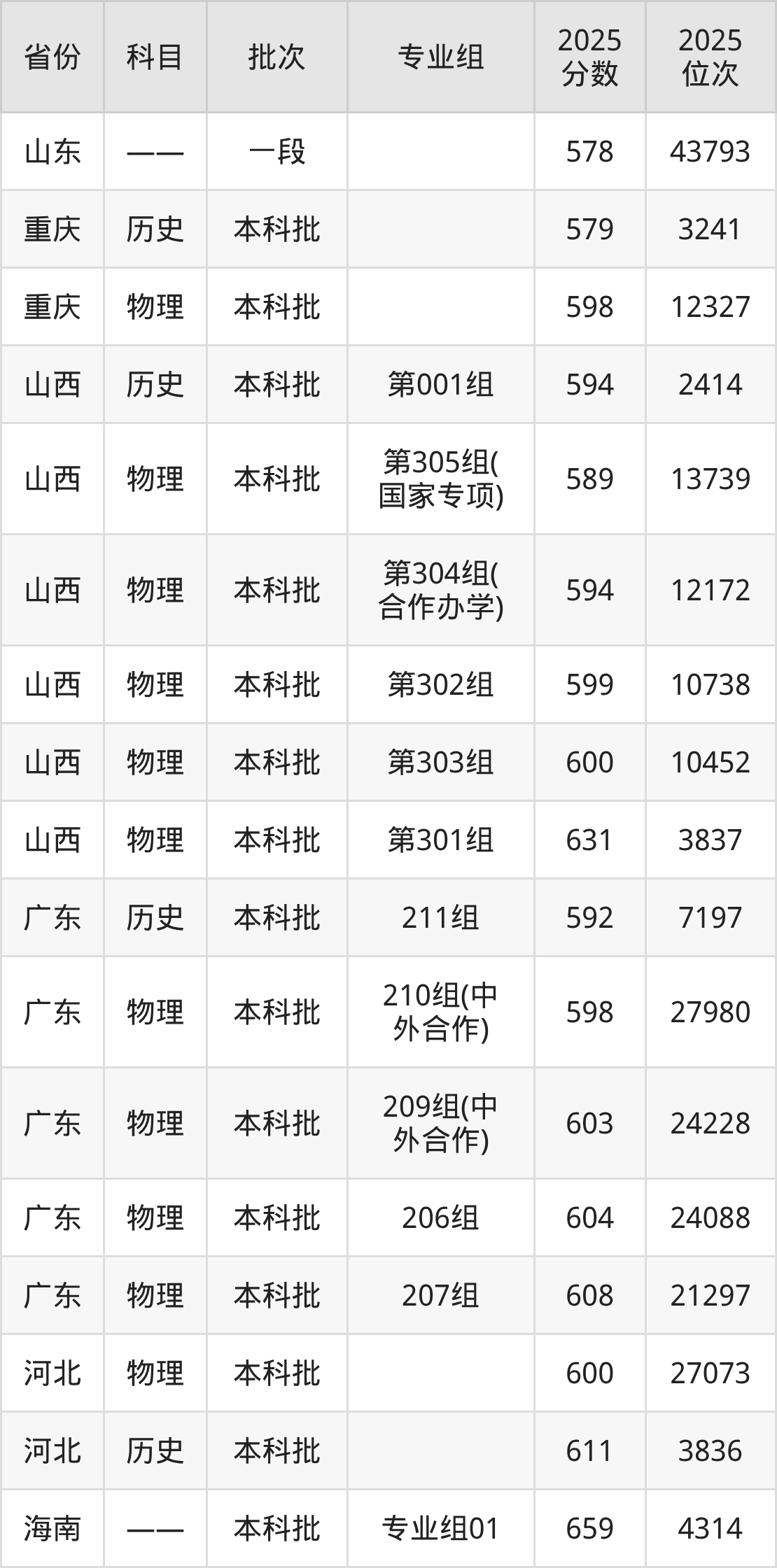 中国药科大学05组(中外合作办学):2025年投档录取最低分为603分,录取最低位次为32190名。