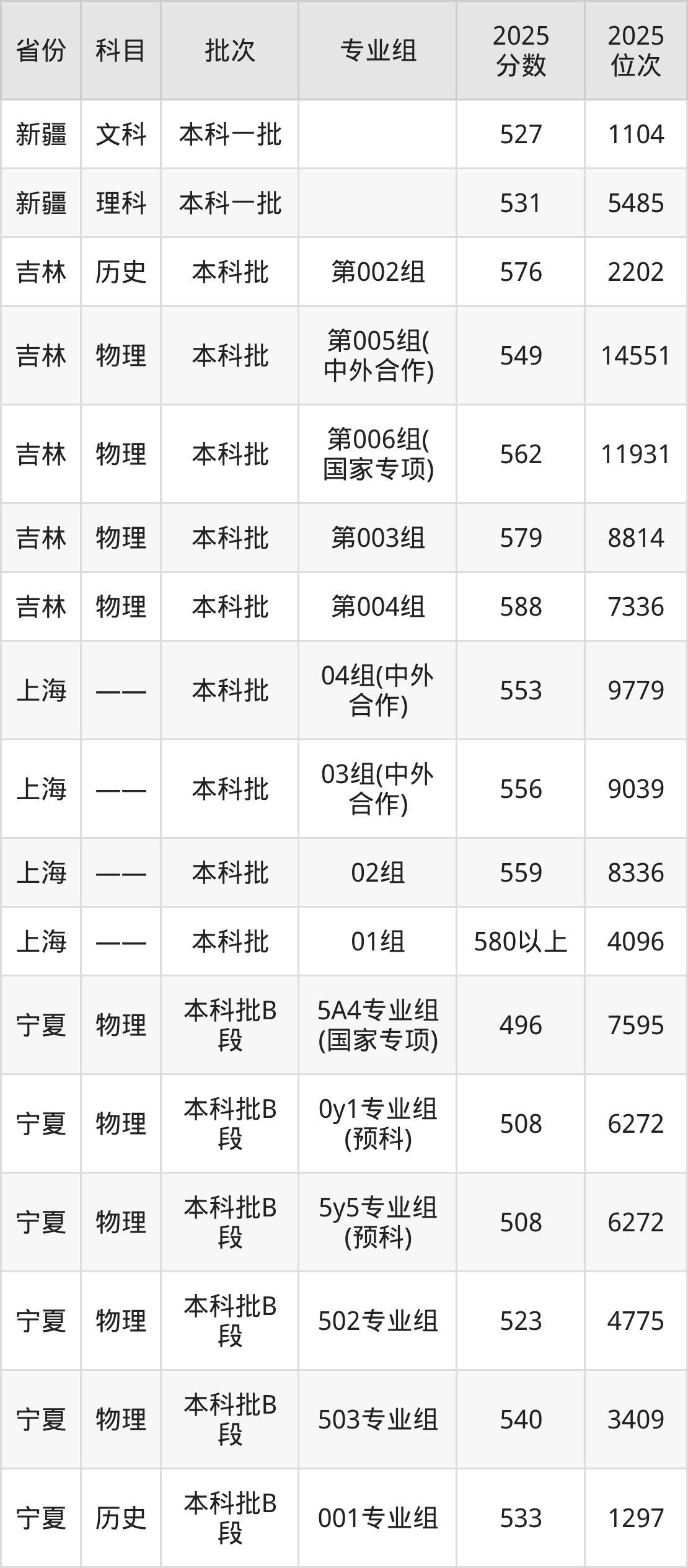 中国药科大学第005组(中外合作):2025年投档录取最低分为549分,录取最低位次为14551名。