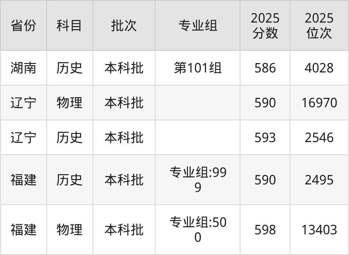 2025年投档录取最低分为590分,录取最低位次为16970名。
