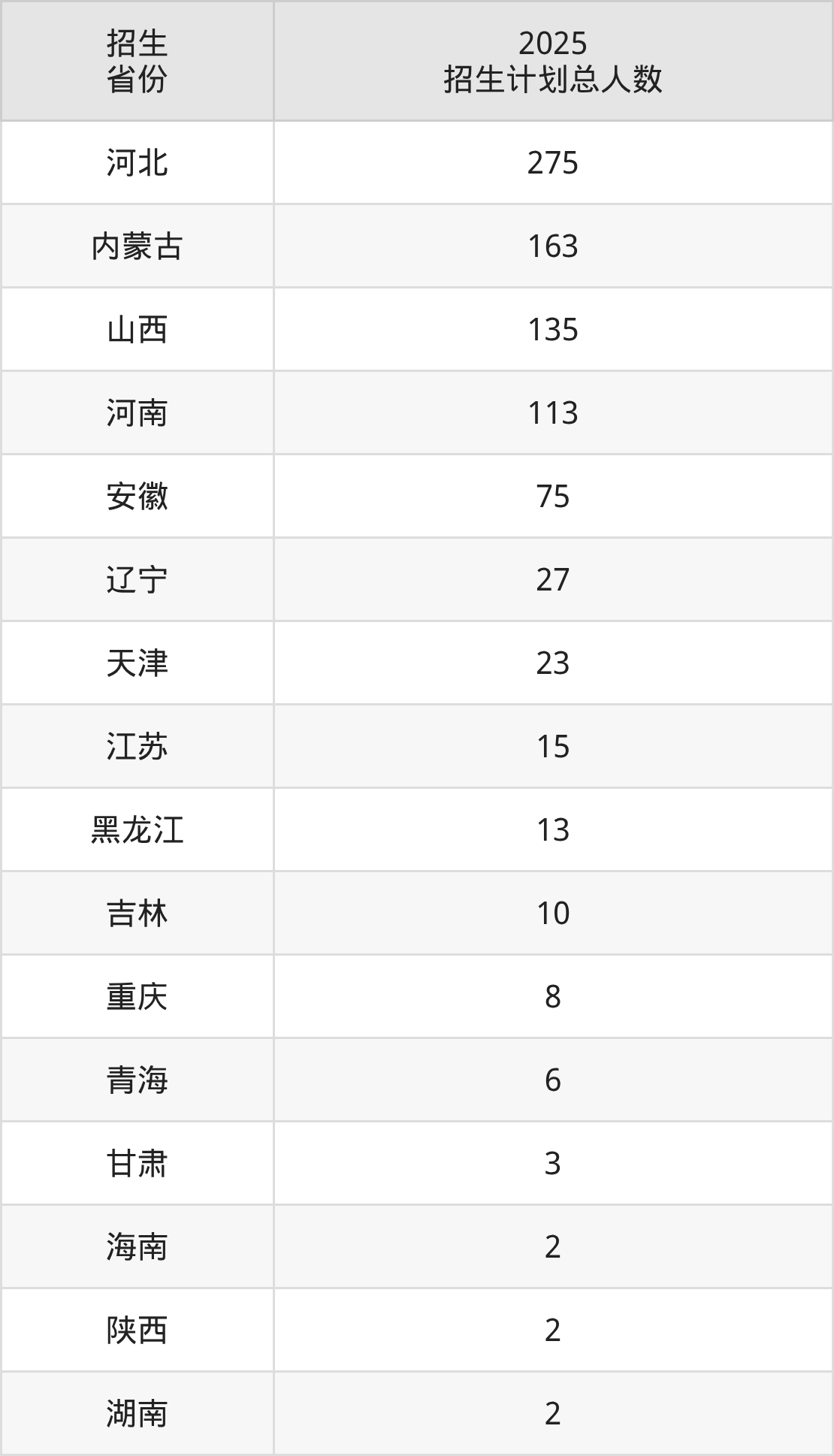 2025年山东文化产业职业学院面向全国19个省市开展专科招生;招生专业共38个,招生人数共876人。山东文化产业职业学院在各省具体招生人数情况如下表。