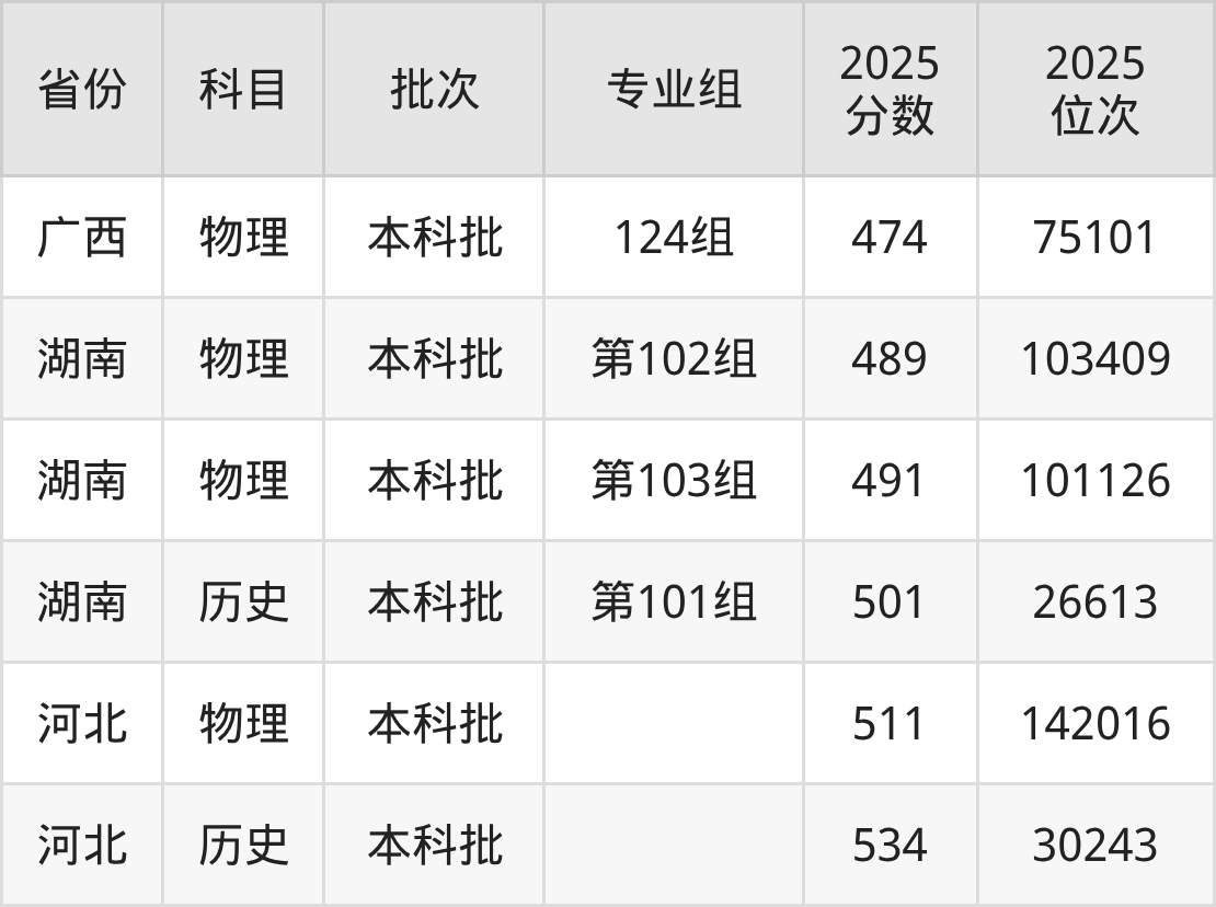 广西警察学院124组:2025年投档录取最低分为474分,录取最低位次为75101名。