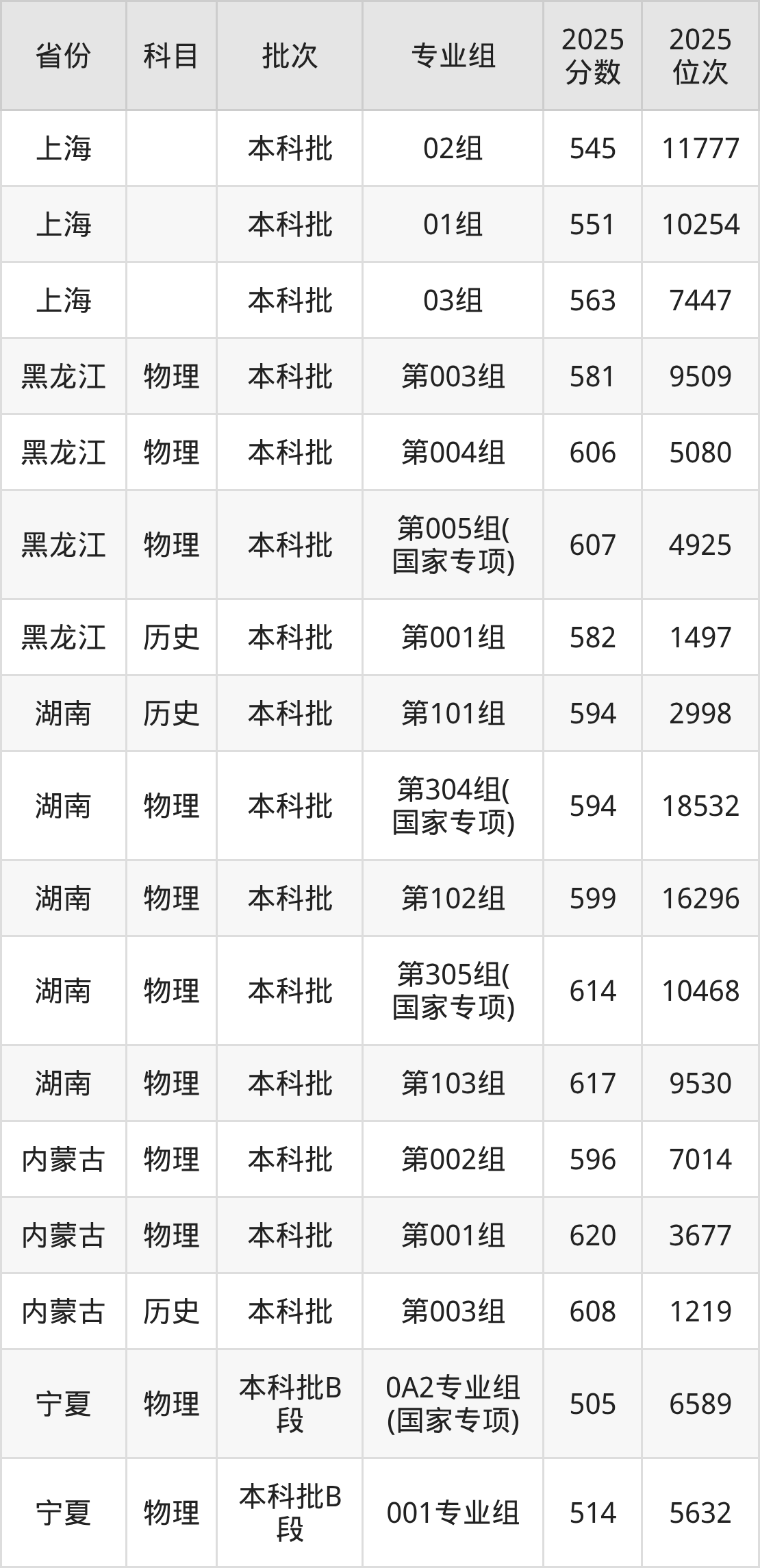 华北电力大学003专业组(国家专项计划):2025年投档录取最低分为559分,录取最低位次为2309名。