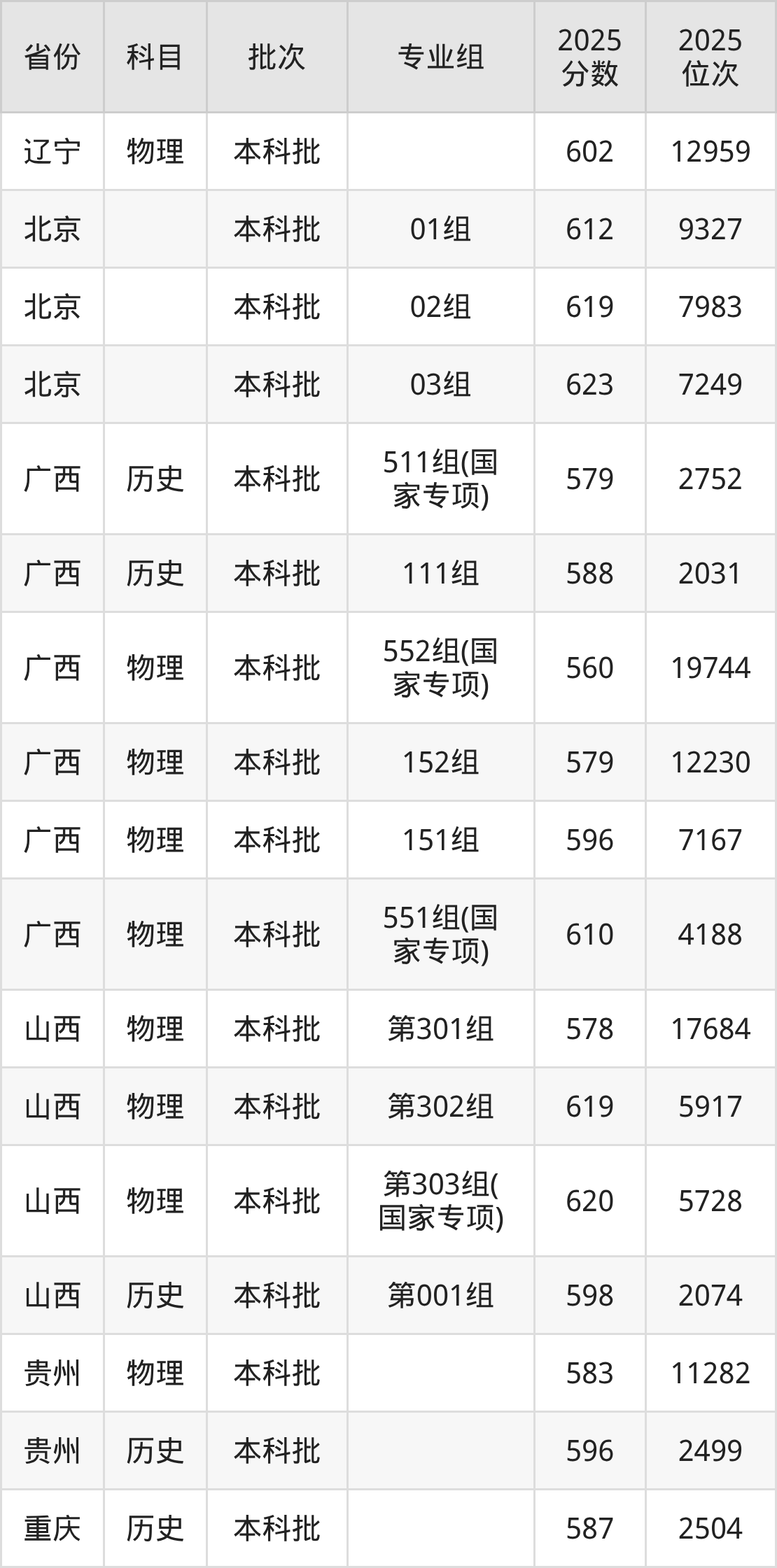 华北电力大学第005组(国家专项):2025年投档录取最低分为607分,录取最低位次为4925名。