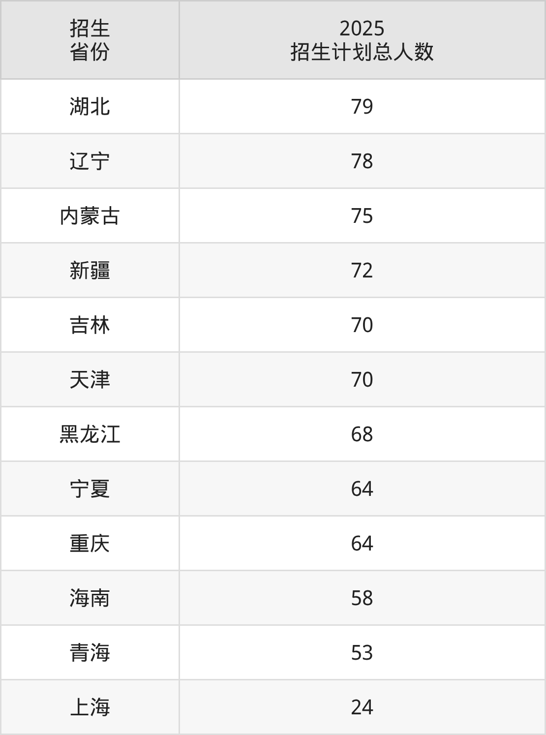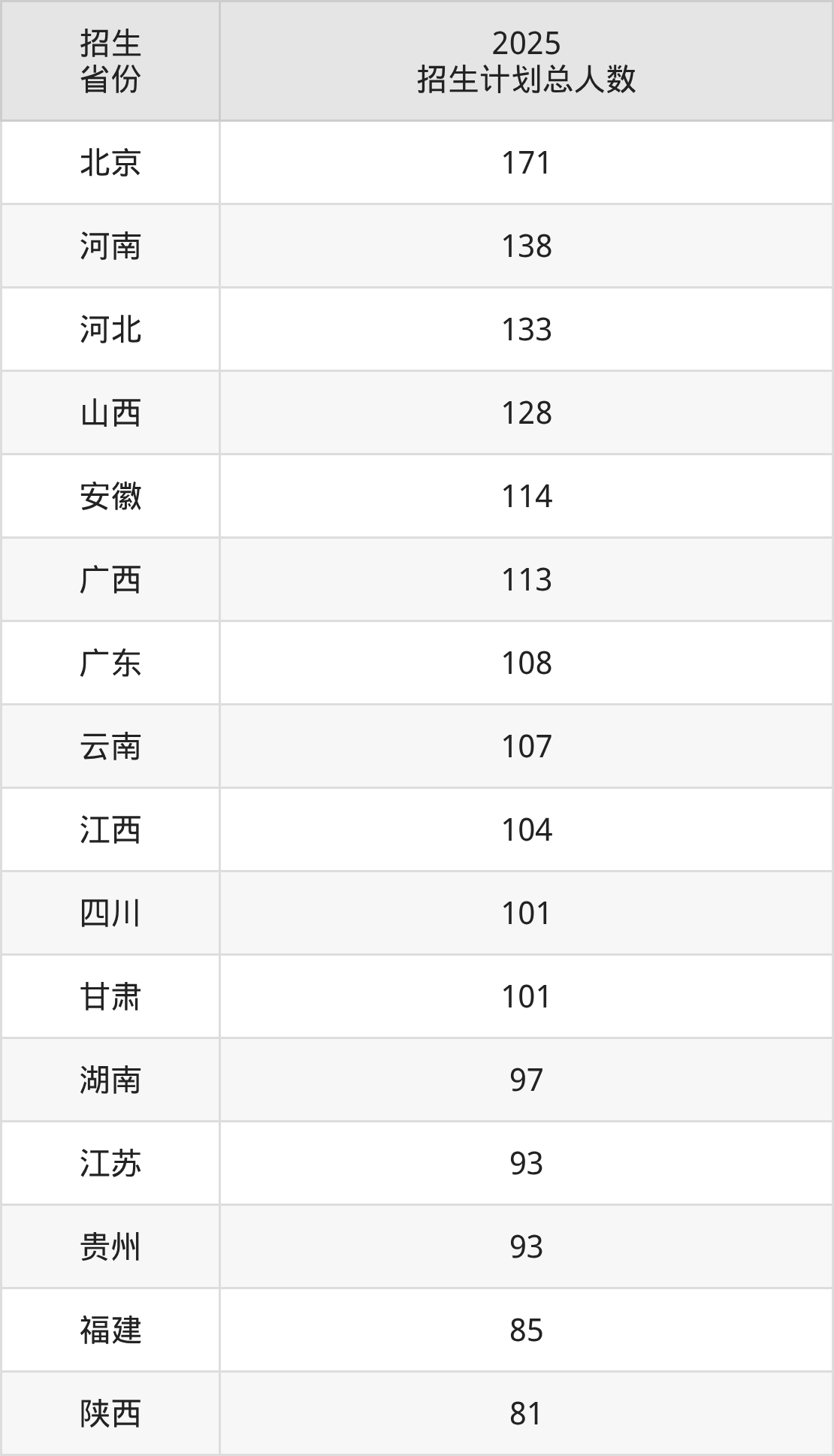 2025年华北电力大学面向全国28个省市开展本科招生;招生专业共39个,招生人数共2541人。2025年在北京市招生计划总人数是171人,其中,华北电力大学在北京市招生人数最多的是电气工程及其自动化。华北电力大学在各省具体招生人数情况如下表。