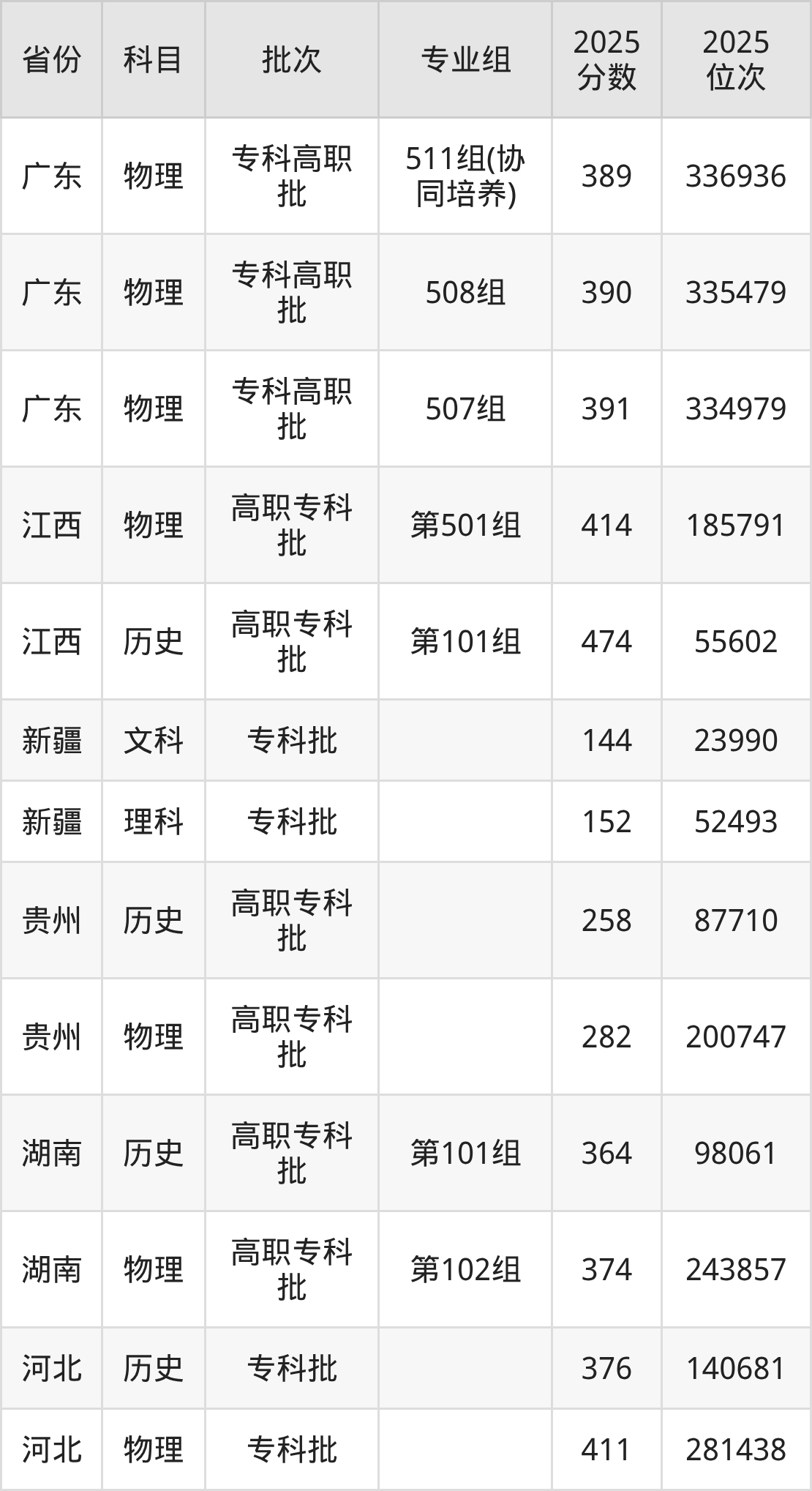 河源职业技术学院511组(协同培养):2025年投档录取最低分为389分,录取最低位次为336936名。