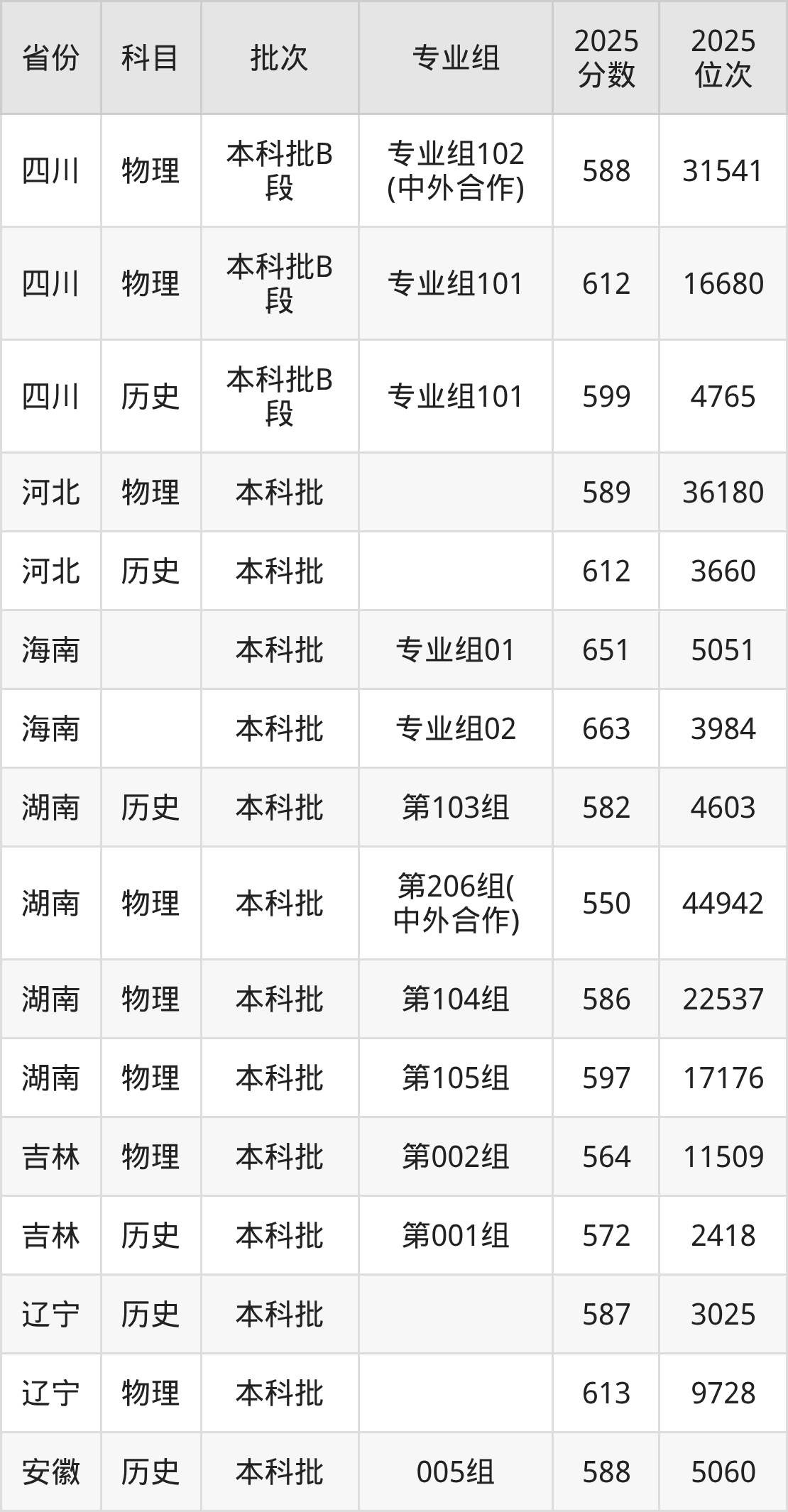 2025年投档录取最低分为587分,录取最低位次为3025名。