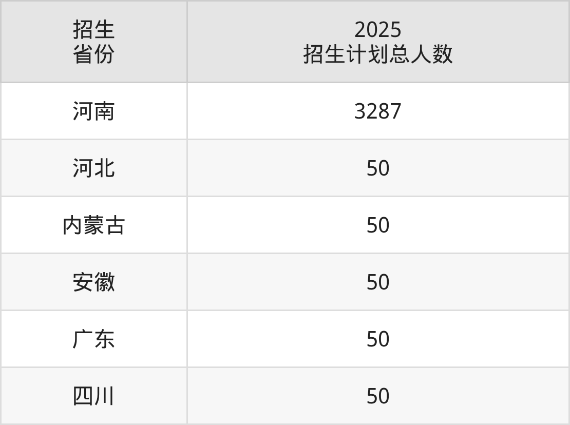2025年郑州信息工程职业学院面向全国6个省市开展专科招生;招生专业共37个,招生人数共3537人。2025年在河南省招生计划总人数是3287人,其中,郑州信息工程职业学院在河南省招生人数最多的是机电一体化技术。郑州信息工程职业学院在各省具体招生人数情况如下表。
