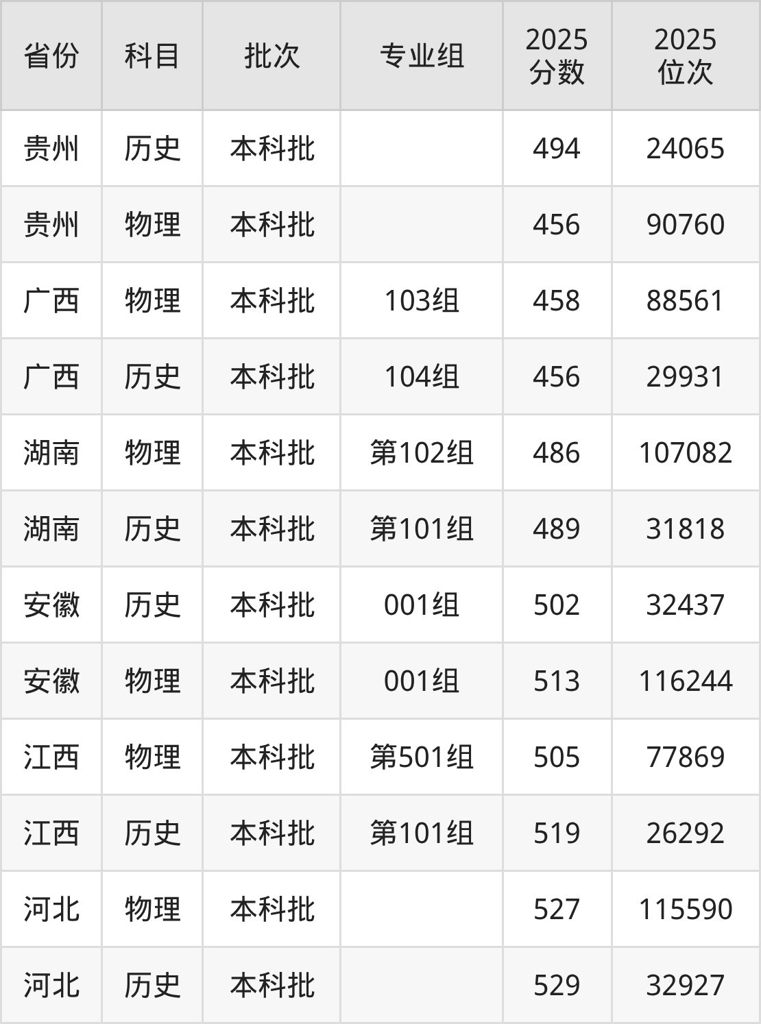 2025年投档录取最低分为494分,录取最低位次为24065名。