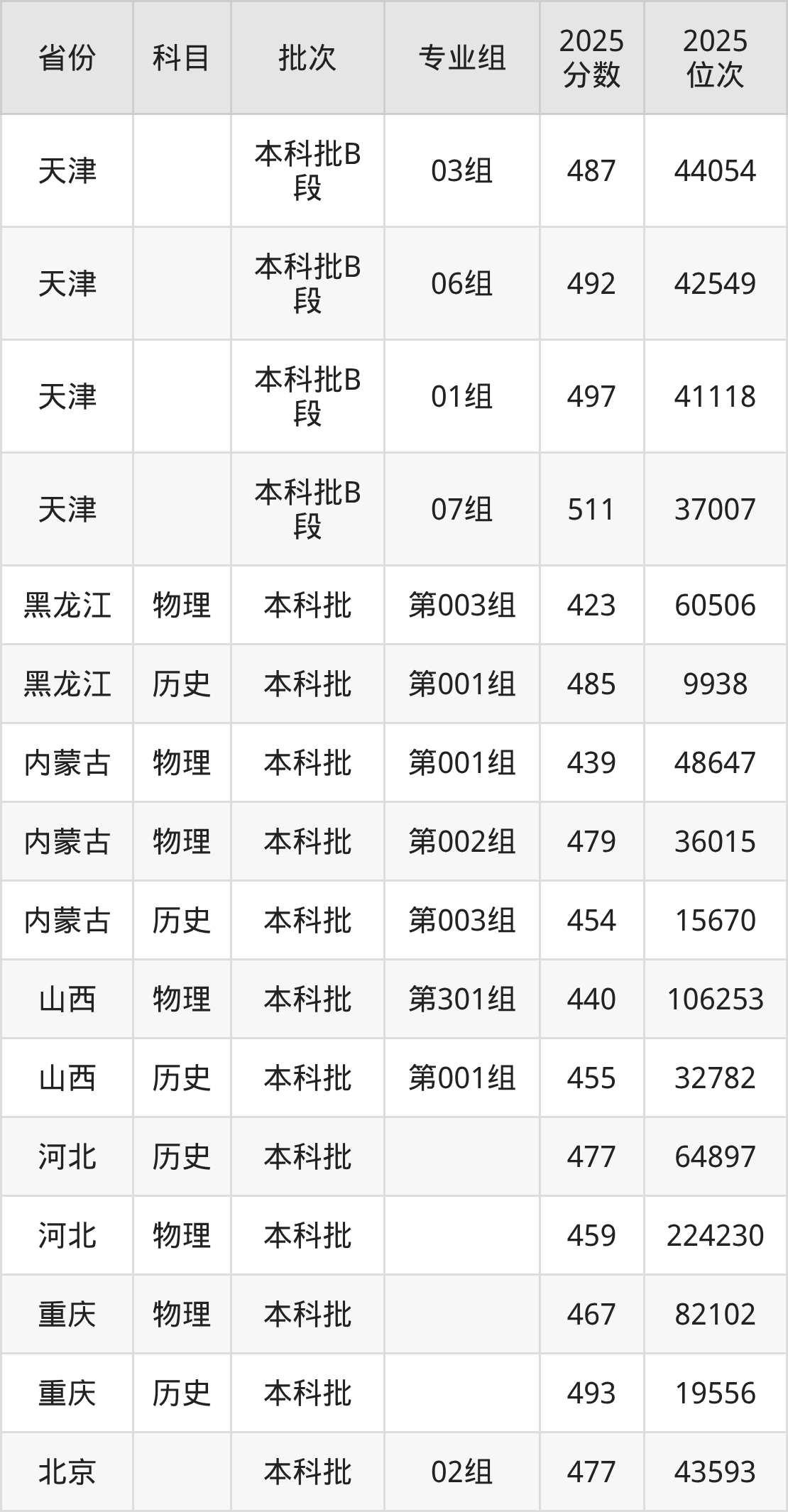 2025年投档录取最低分为493分,录取最低位次为19556名。