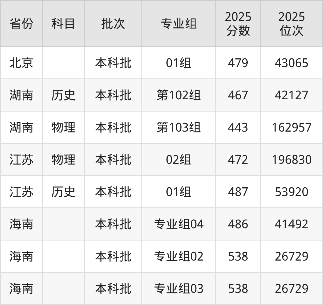2025年燕京理工学院全国录取分数线是423分到538分,录取最低在黑龙江物理类(第003组)、录取最高在海南(专业组02)。各省各专业组最低分具有差异,详情如下: